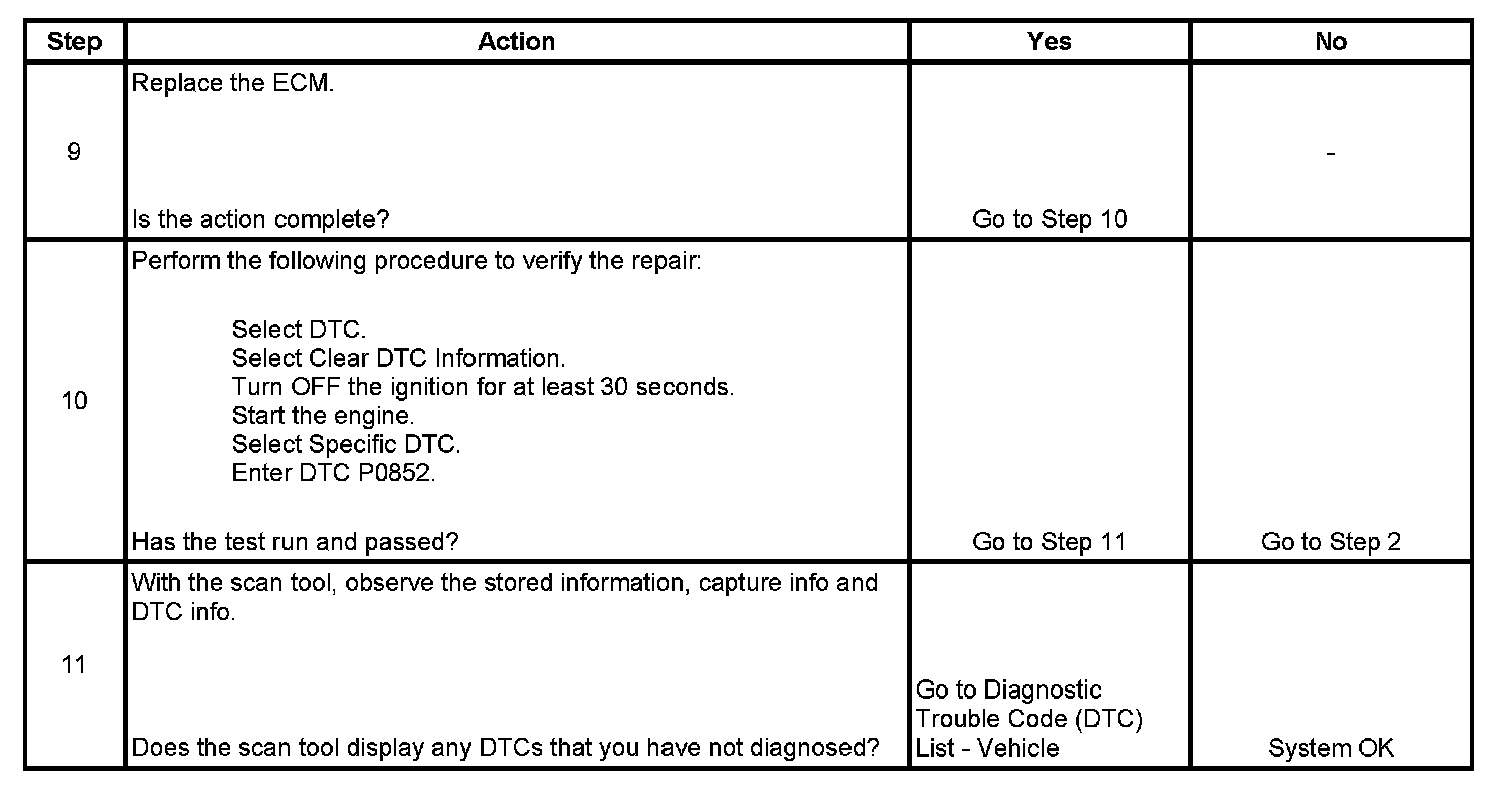 ^ The ECM clears the driver information center (DIC) message when the condition no longer exists.