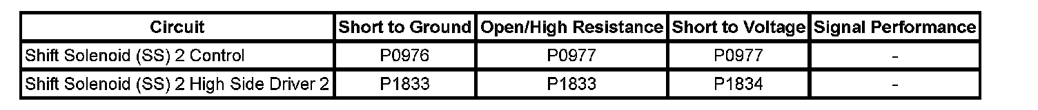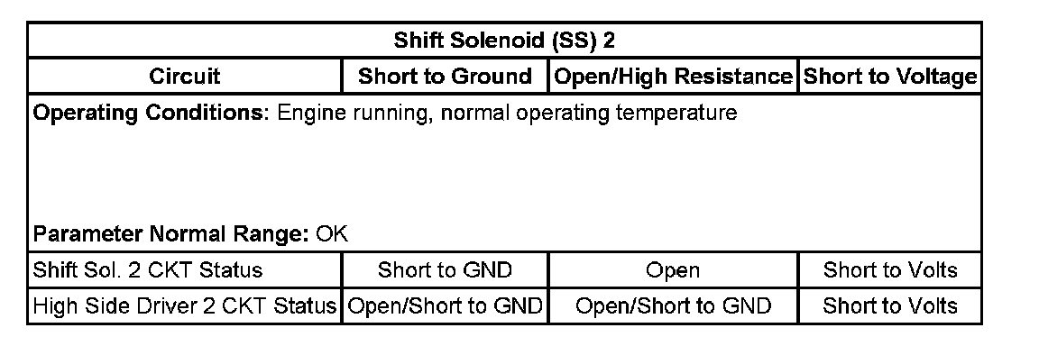 - Shift Solenoid (SS) 2 Control Circuit Low Voltage