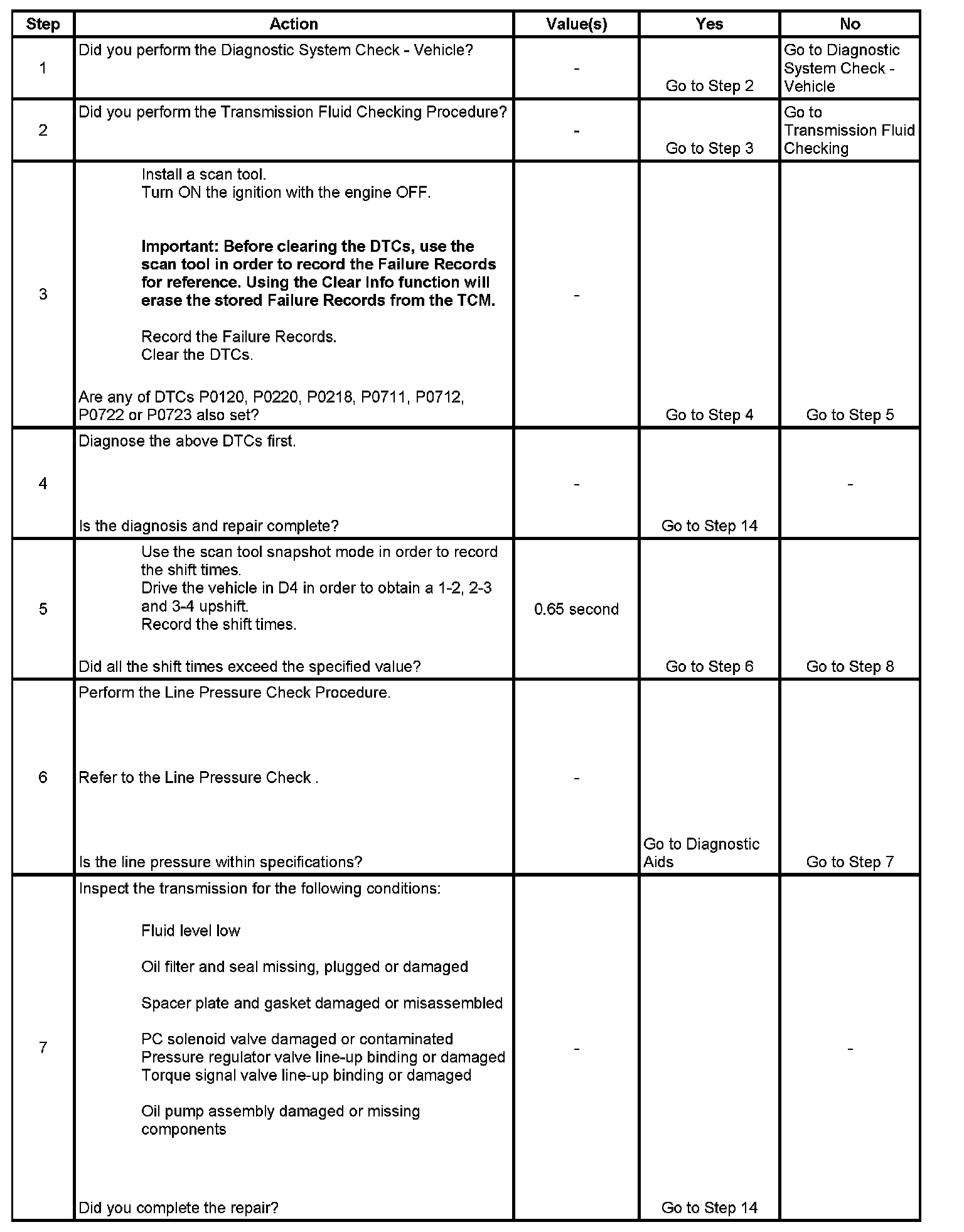 13. This step inspects or repairs components that may cause a maximum adapt and long 3-4 upshift.