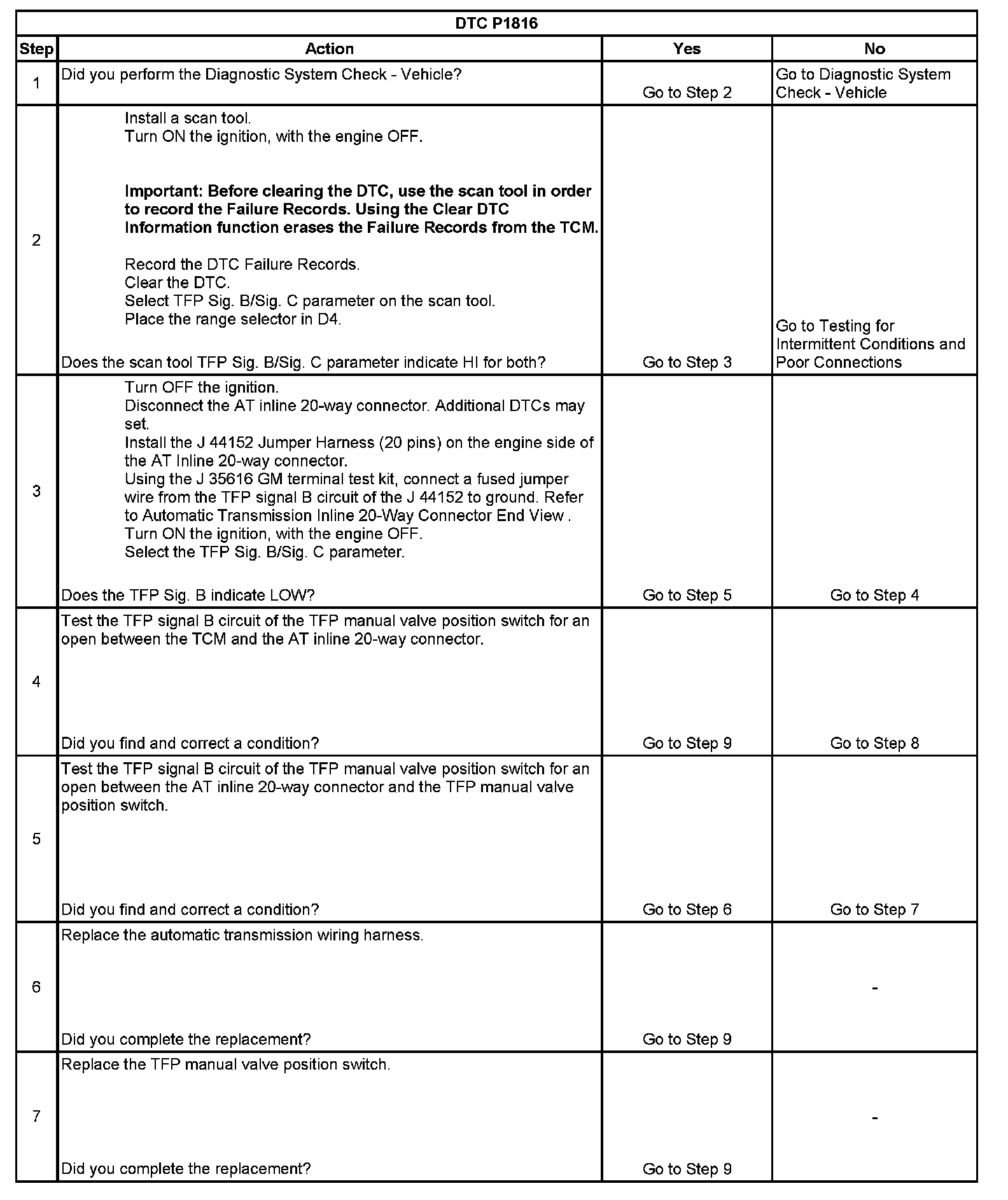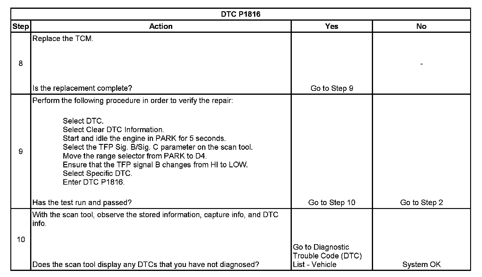 ^ The TCM stores DTC P1816 in TCM history during the second consecutive trip in which the Conditions for Setting the DTC are met.