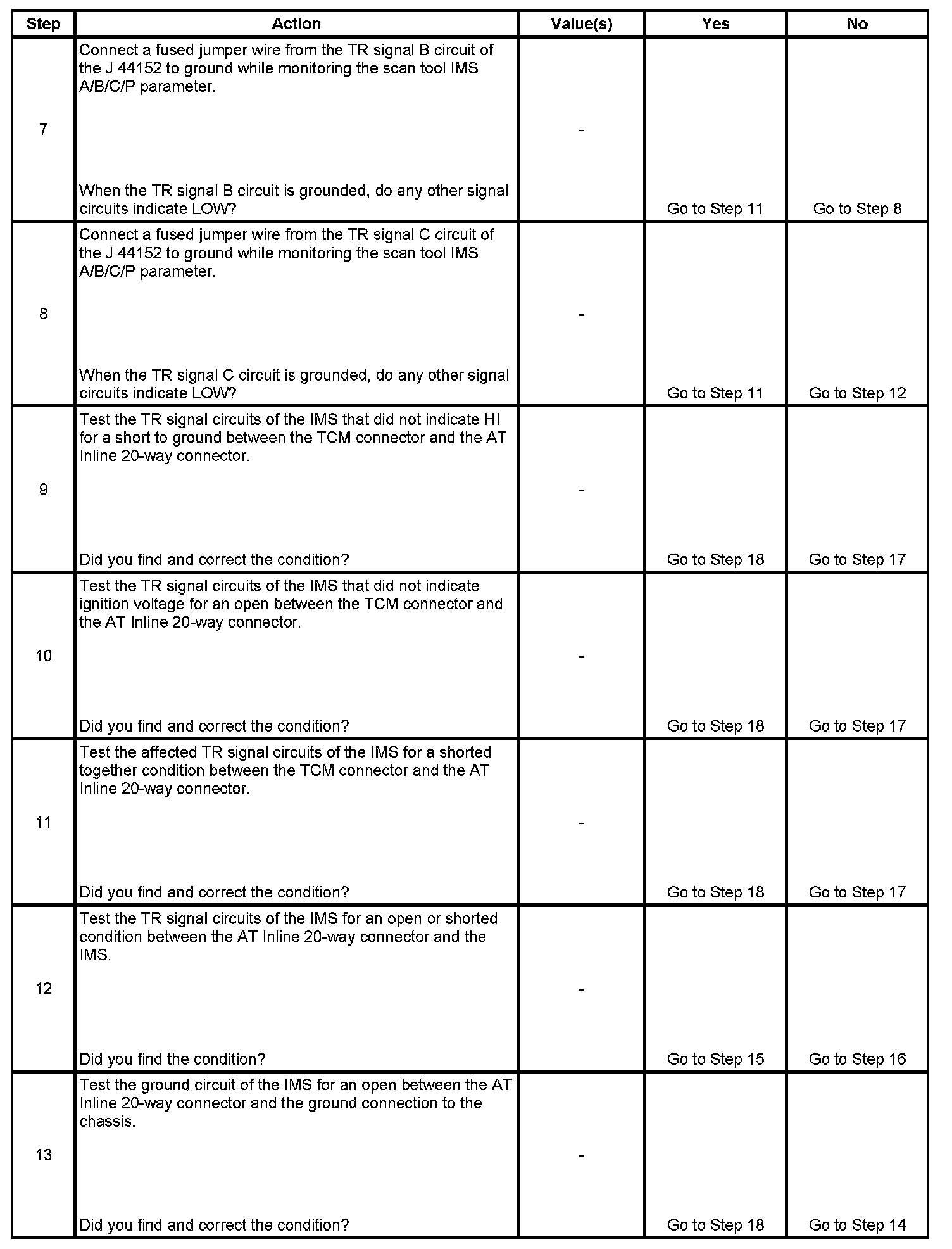 13. This step tests the internal transmission harness. If no fault is found in the harness, the fault will be in the switch.
