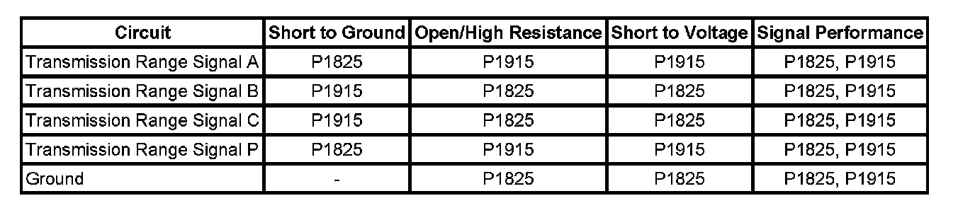 ^ DTCs P1825 and P1915 are Type A DTCs.