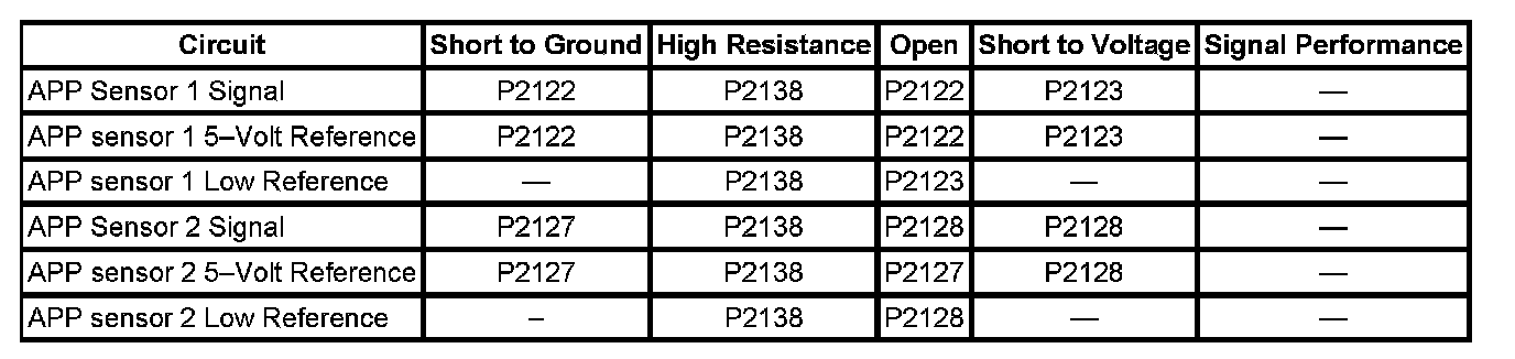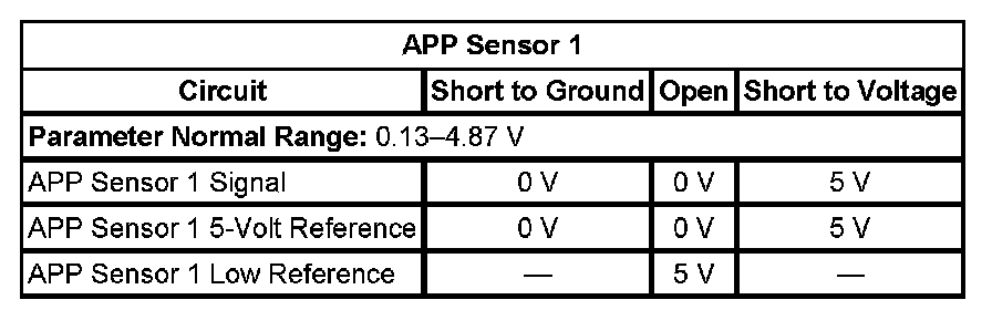 - Accelerator Pedal Position (APP) Sensor 1 Circuit High Voltage