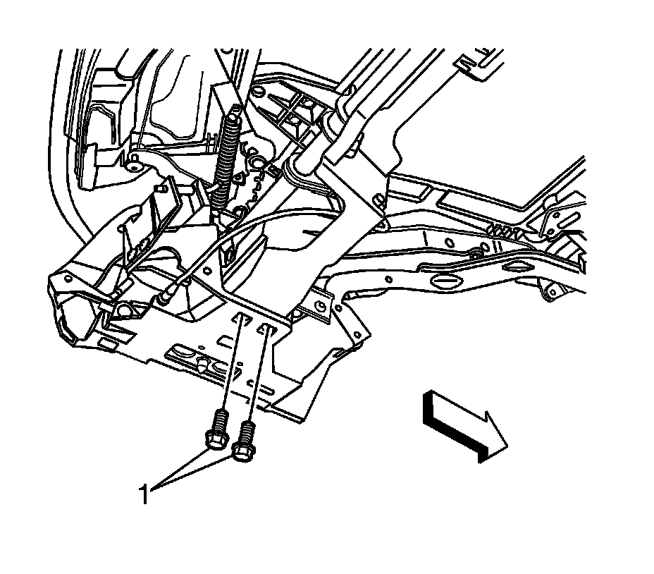 Install the 4 underside bolts (1) which retain the stowage compartment closeout panel link assembly to the right and left side rail links.