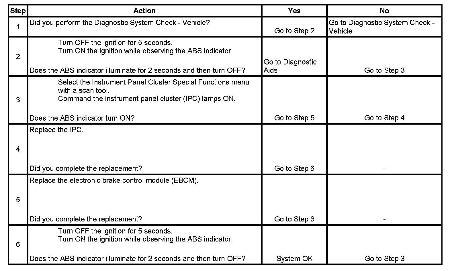 3. This step tests if the instrument panel cluster (IPC) is able to turn OFF the ABS indicator.