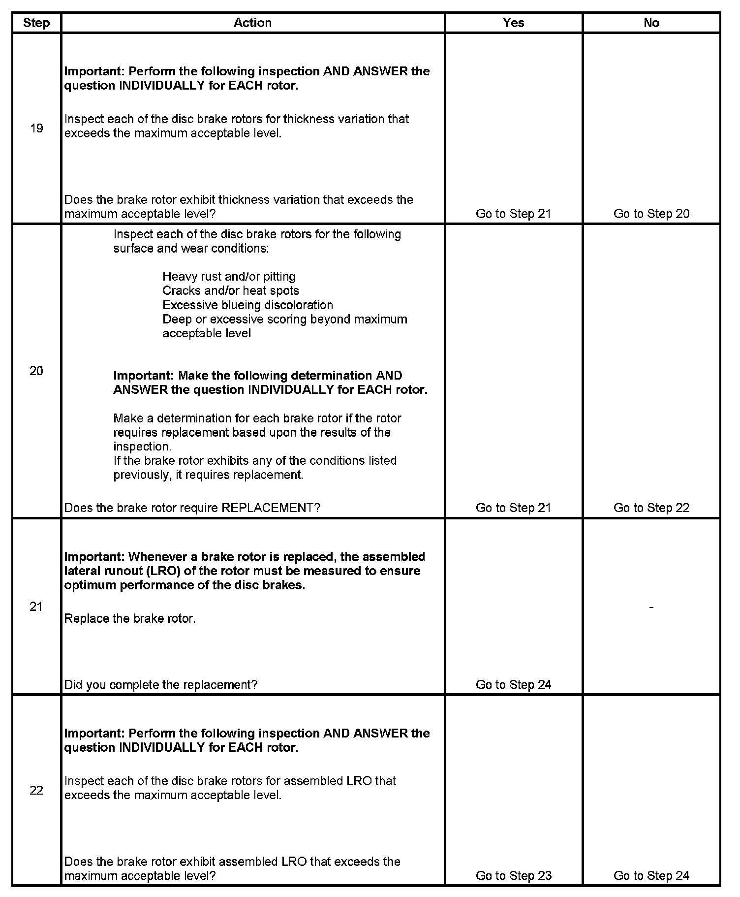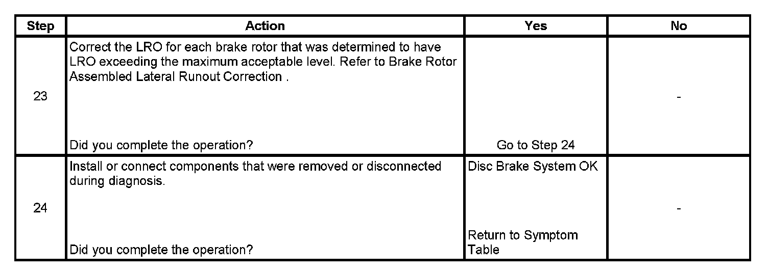 22. Disc brake rotor assembled lateral runout (LRO) that exceeds the maximum acceptable level can lead to thickness variation.