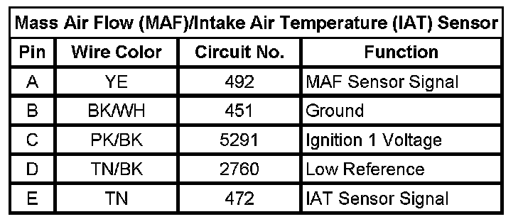 Mass Air Flow (MAF)/Intake Air Temperature (IAT) Sensor