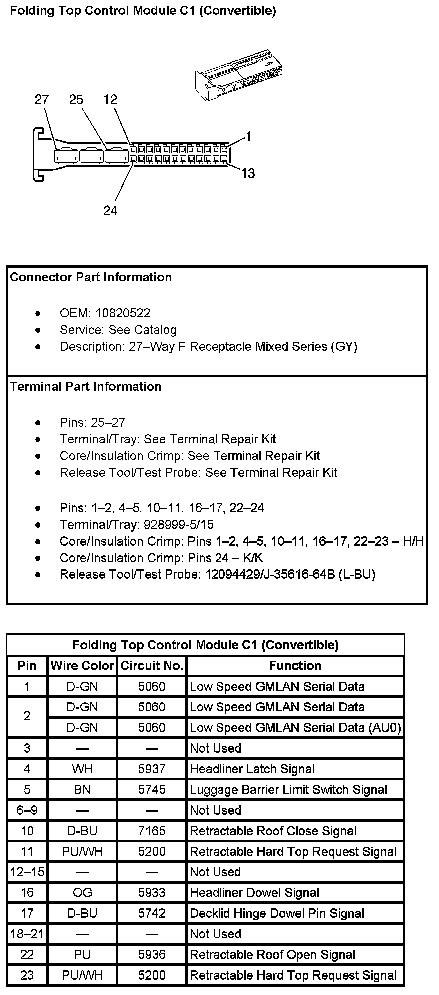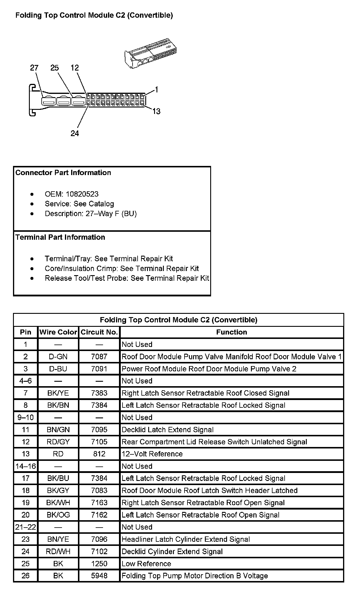Folding Top Control Module C2 (Convertible) (Pin 27):