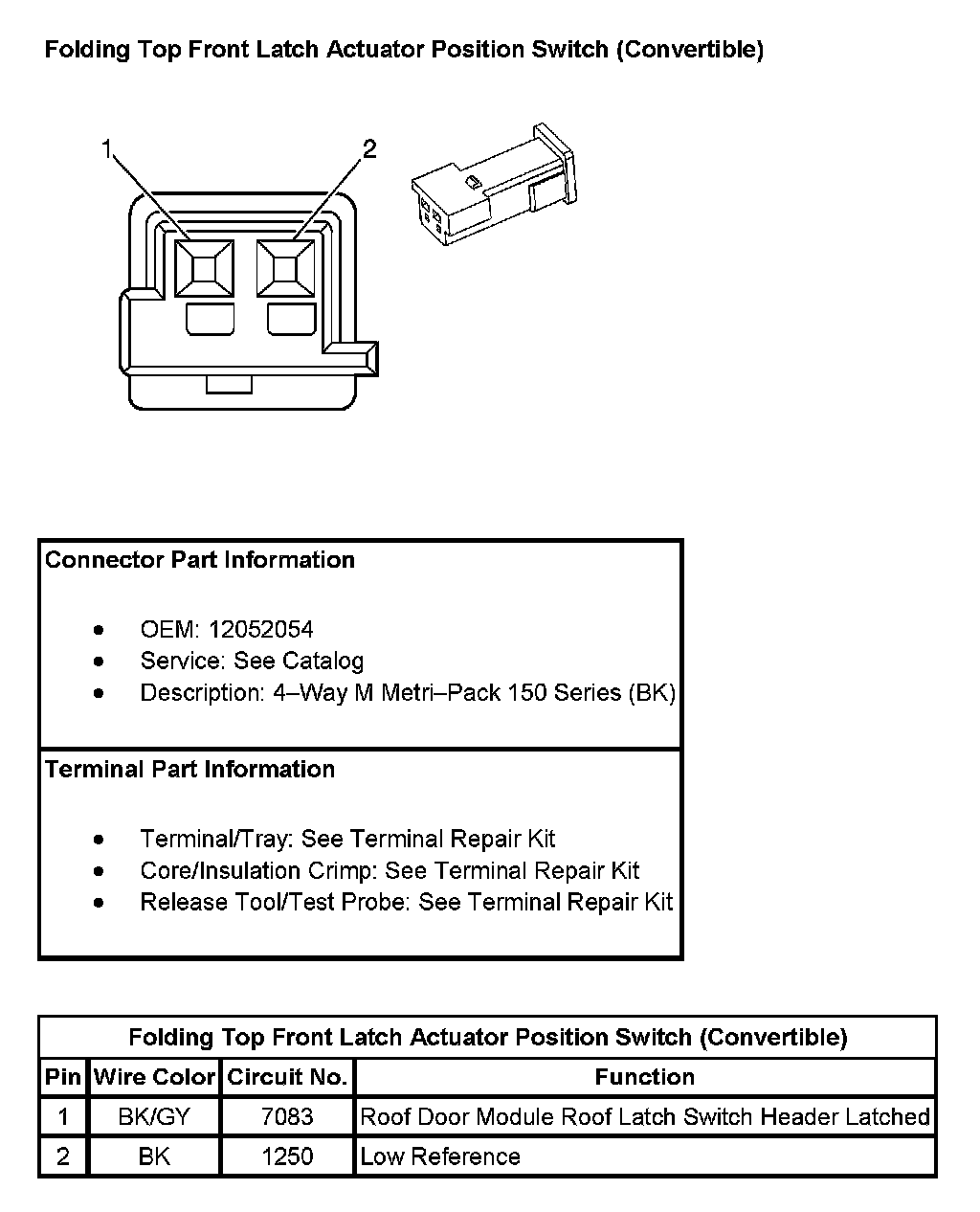 Folding Top Front Latch Actuator Position Switch (Convertible):
