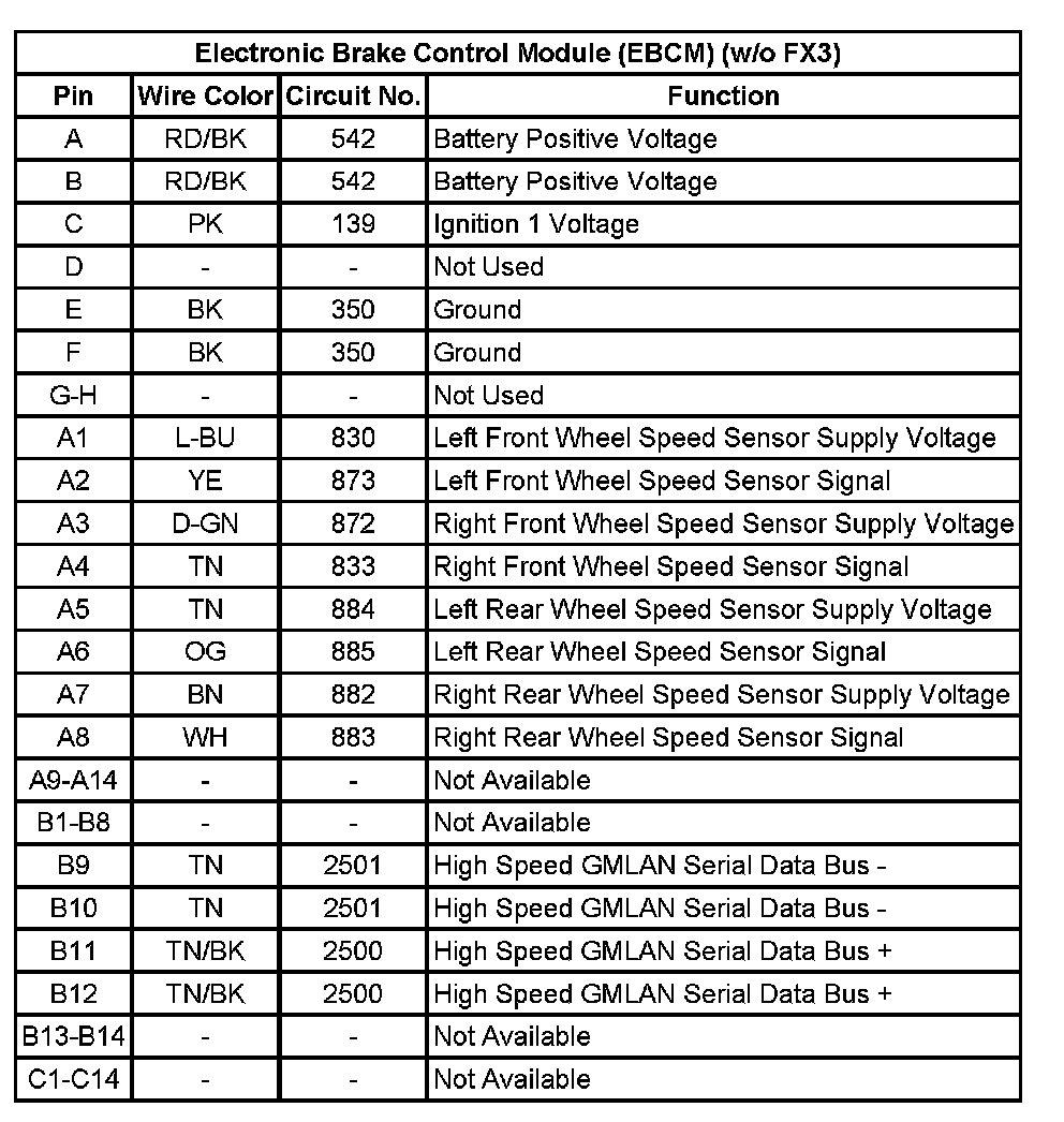 Electronic Brake Control Module (EBCM) (w/o FX3):