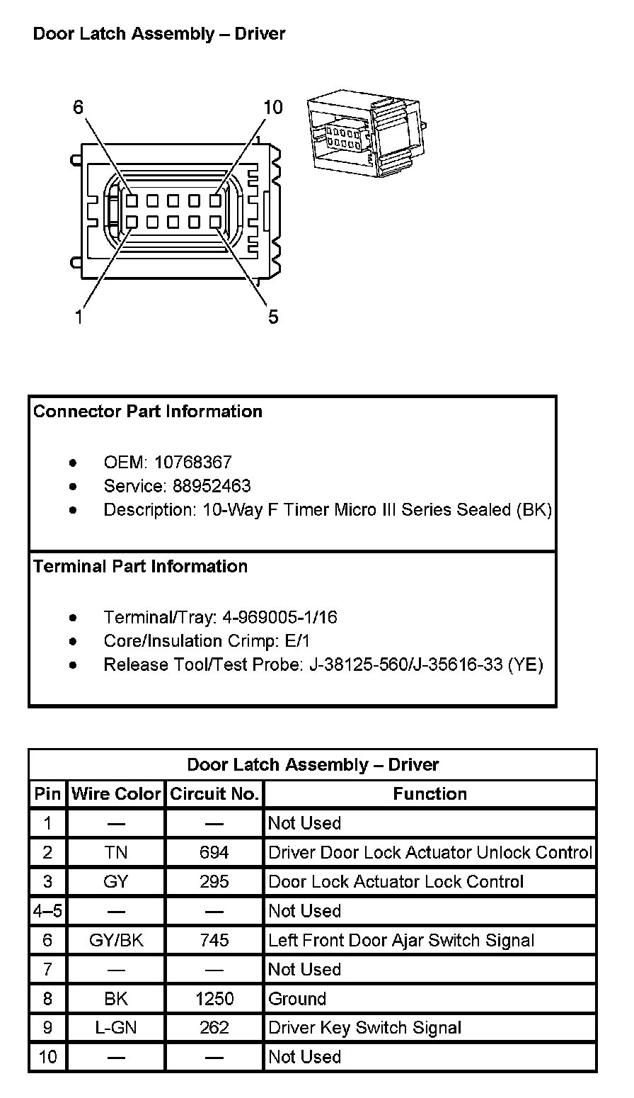 Door Latch Assembly - Driver:
