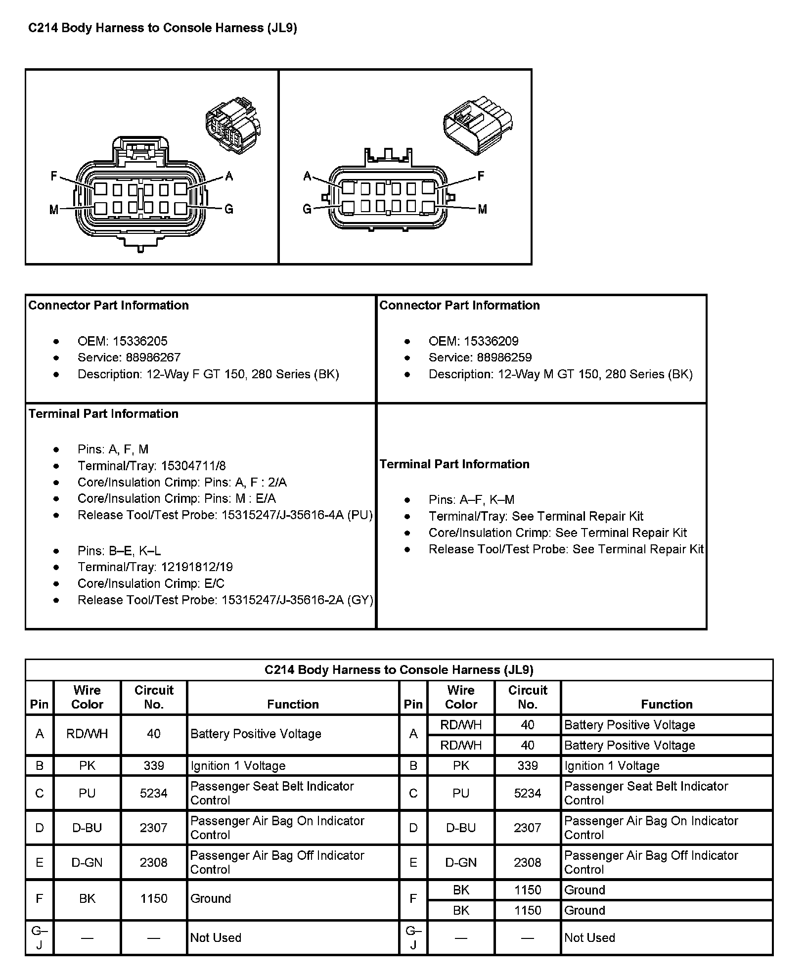 C214 Body Harness To Console Harness (With RPO Code JL9) (Pin K To M):