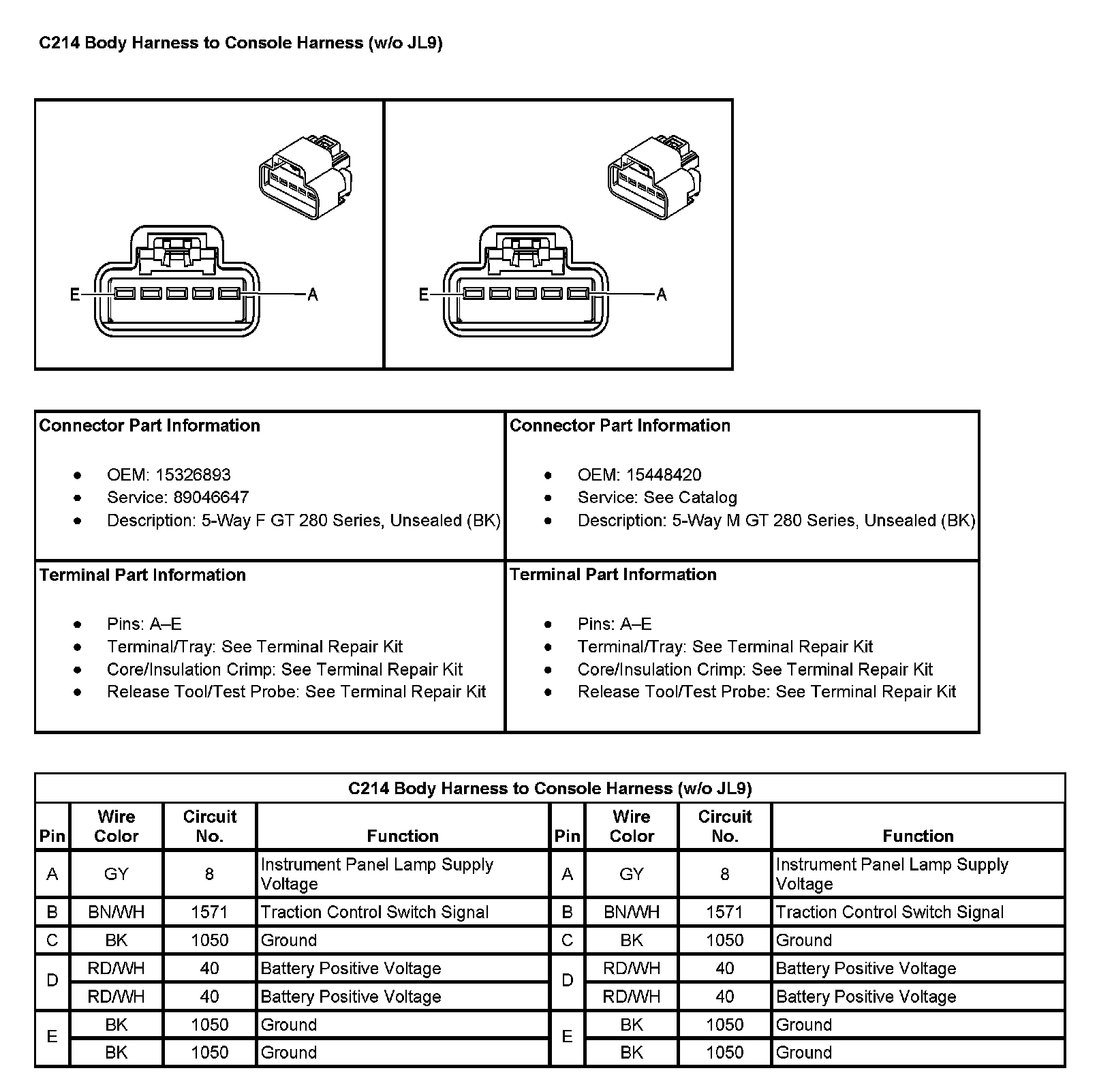 C214 Body Harness To Console Harness (Without RPO Code JL9) (Pin A To E):