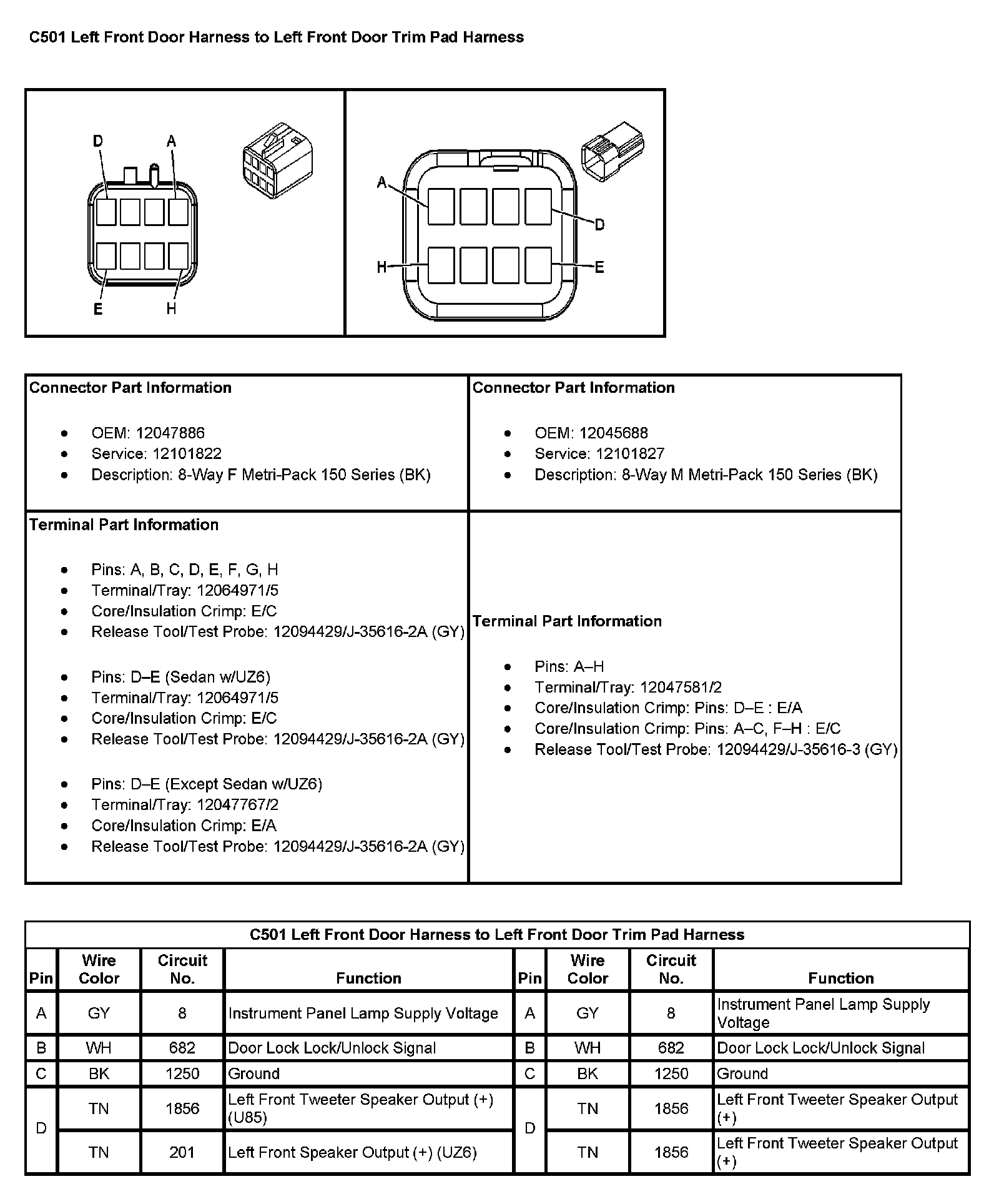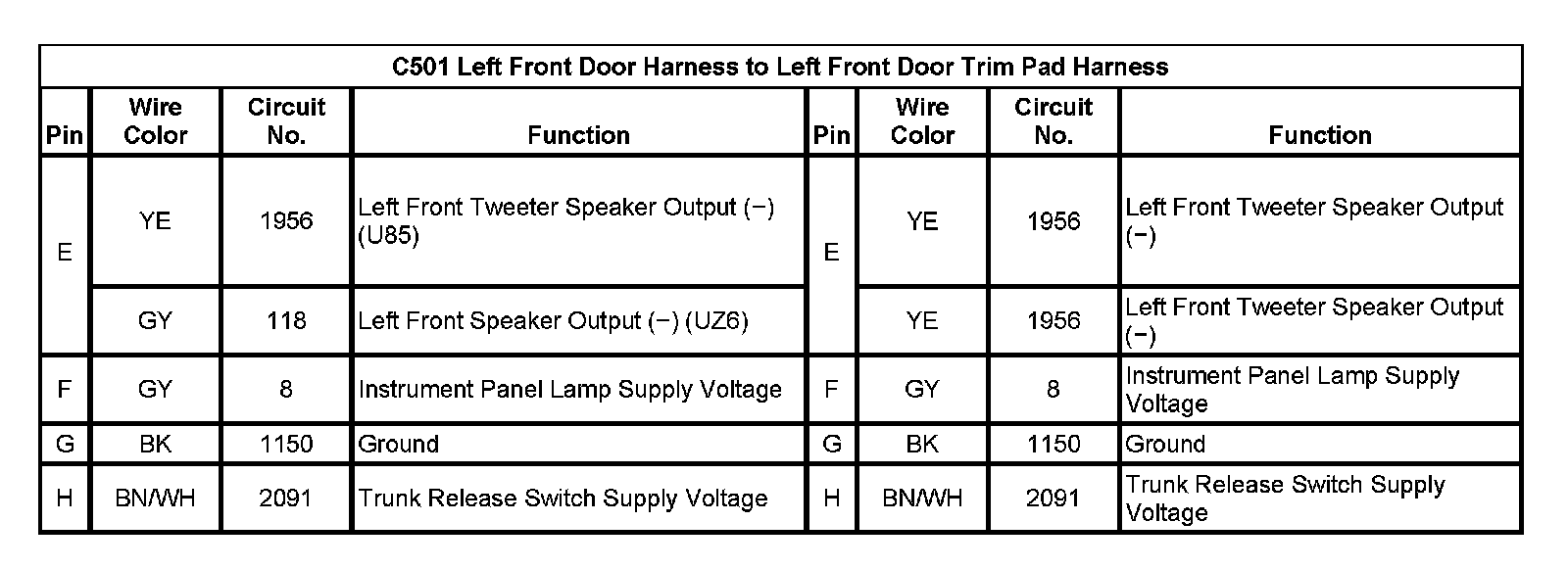 C501 Left Front Door Harness To Left Front Door Trim Pad Harness (Pin E To H):