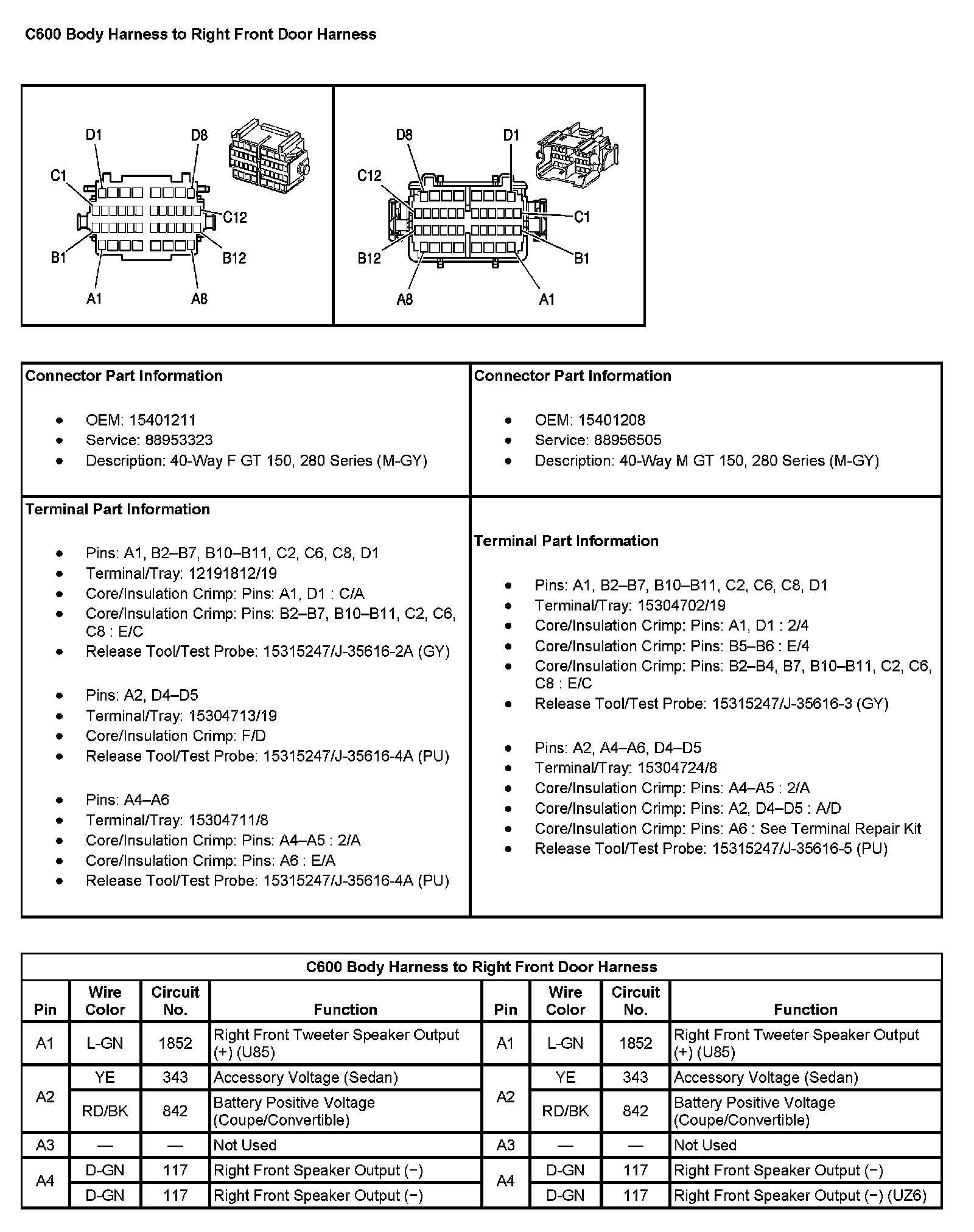 C600 Body Harness To Right Front Door Harness (Pin A1 To A4):