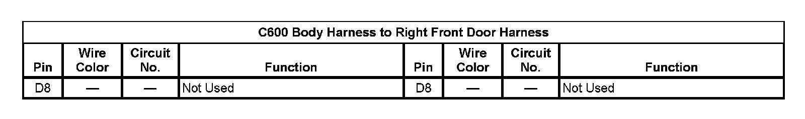 C600 Body Harness To Right Front Door Harness (Pin D8):