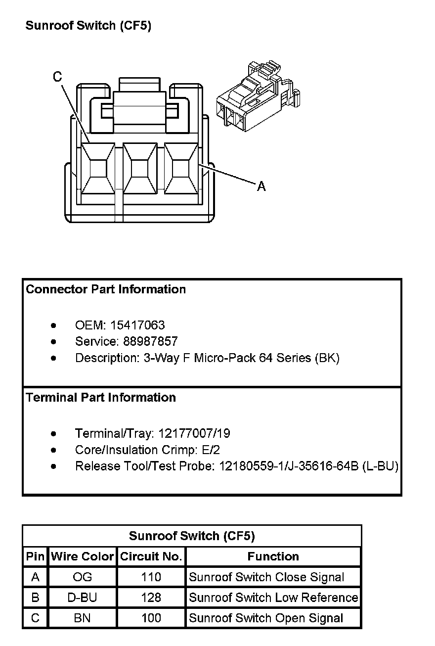 Sunroof Switch (With RPO Code CF5):