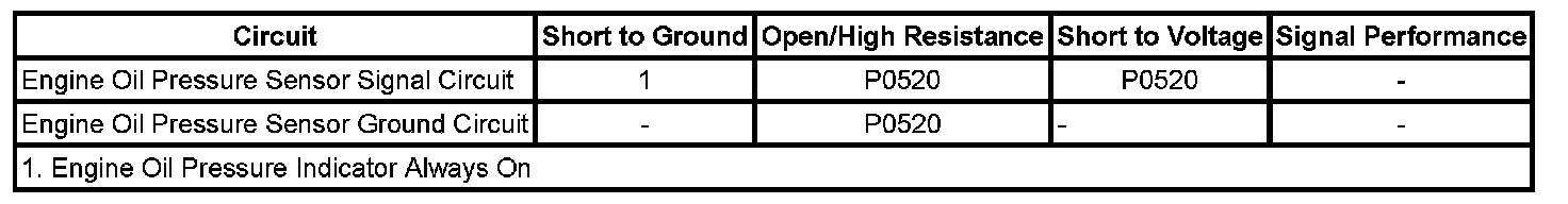The engine oil pressure (EOP) switch is a normally closed switch that opens with the proper oil pressure. With the ignition switch turned ON and the engine not running, the engine control module (ECM) should detect a low signal voltage input. With the engine running, the pressure switch opens, and the ECM should detect a high signal voltage input. The ECM tests the state of the EOP circuit with the ignition switch turned ON, and the engine turned OFF. When the oil pressure is low, the ECM sends a GMLAN serial data message to the body control module (BCM) requesting the EOP indicator turned ON. The instrument panel cluster (IPC) illuminates the EOP indicator when the IPC receives a serial data message from the BCM requesting the EOP indicator turned ON.