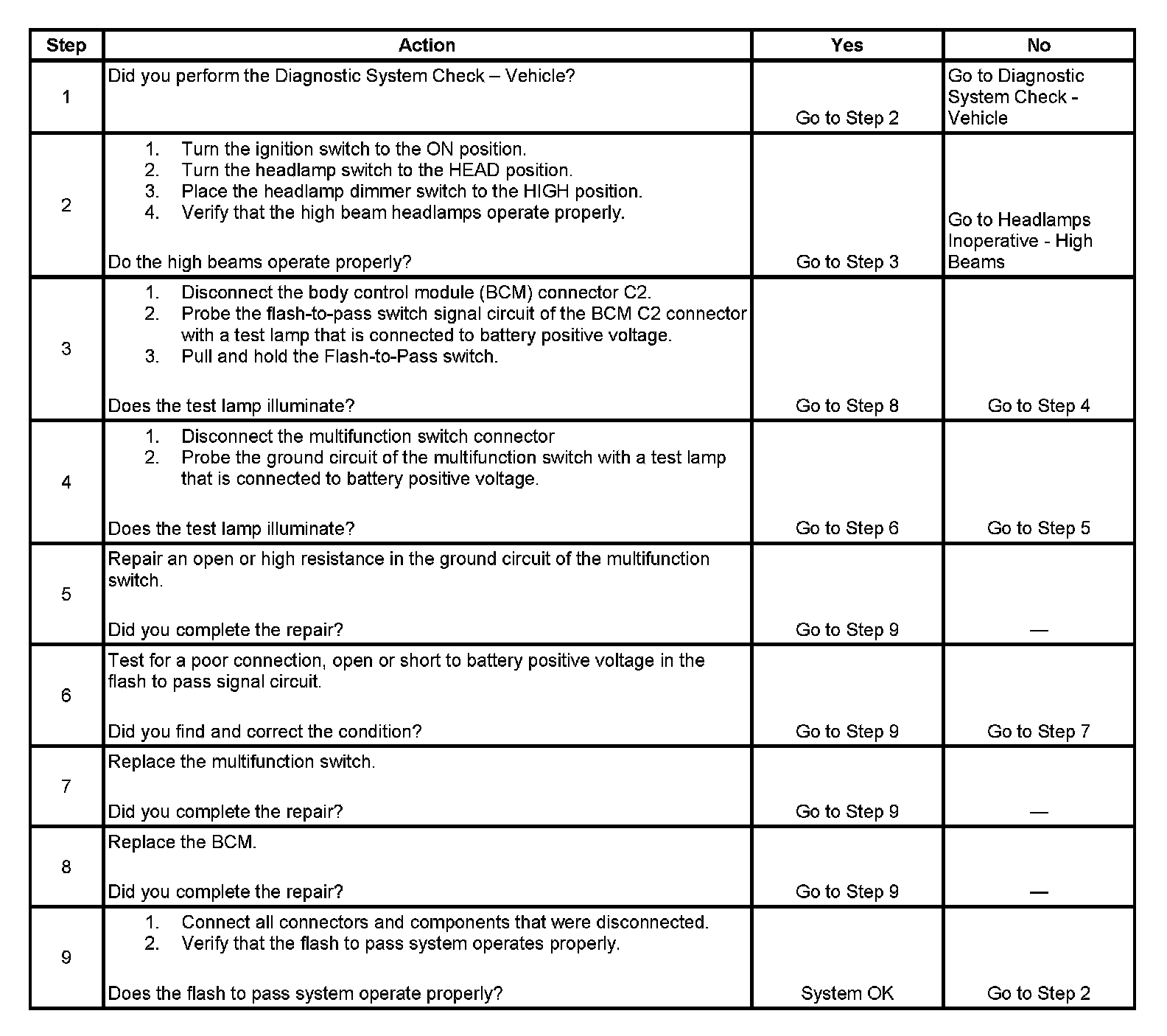 Headlamps Flash to Pass Inoperative