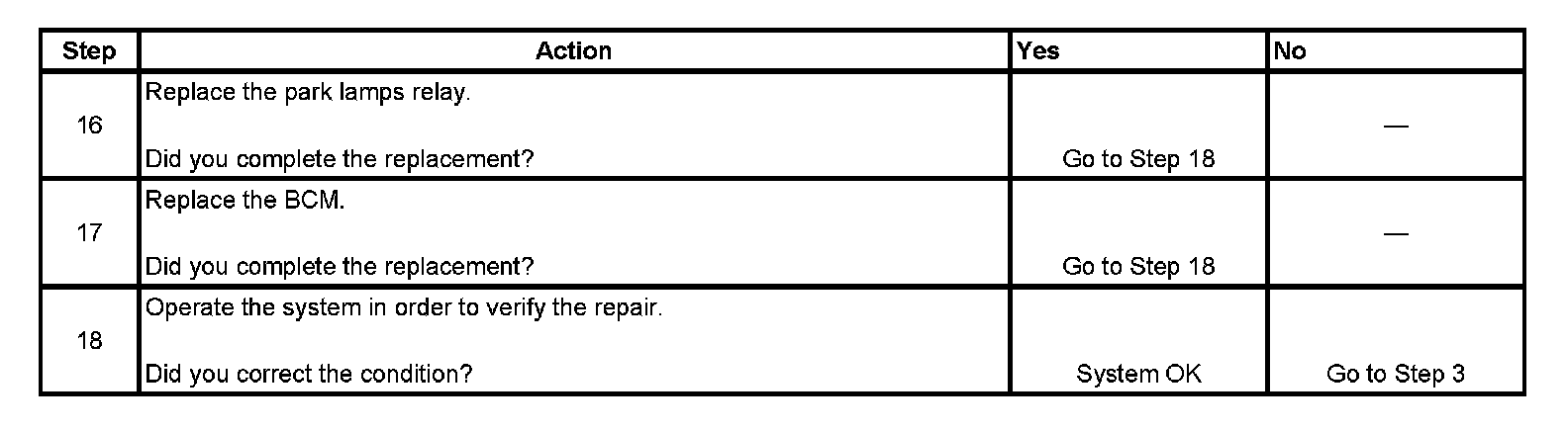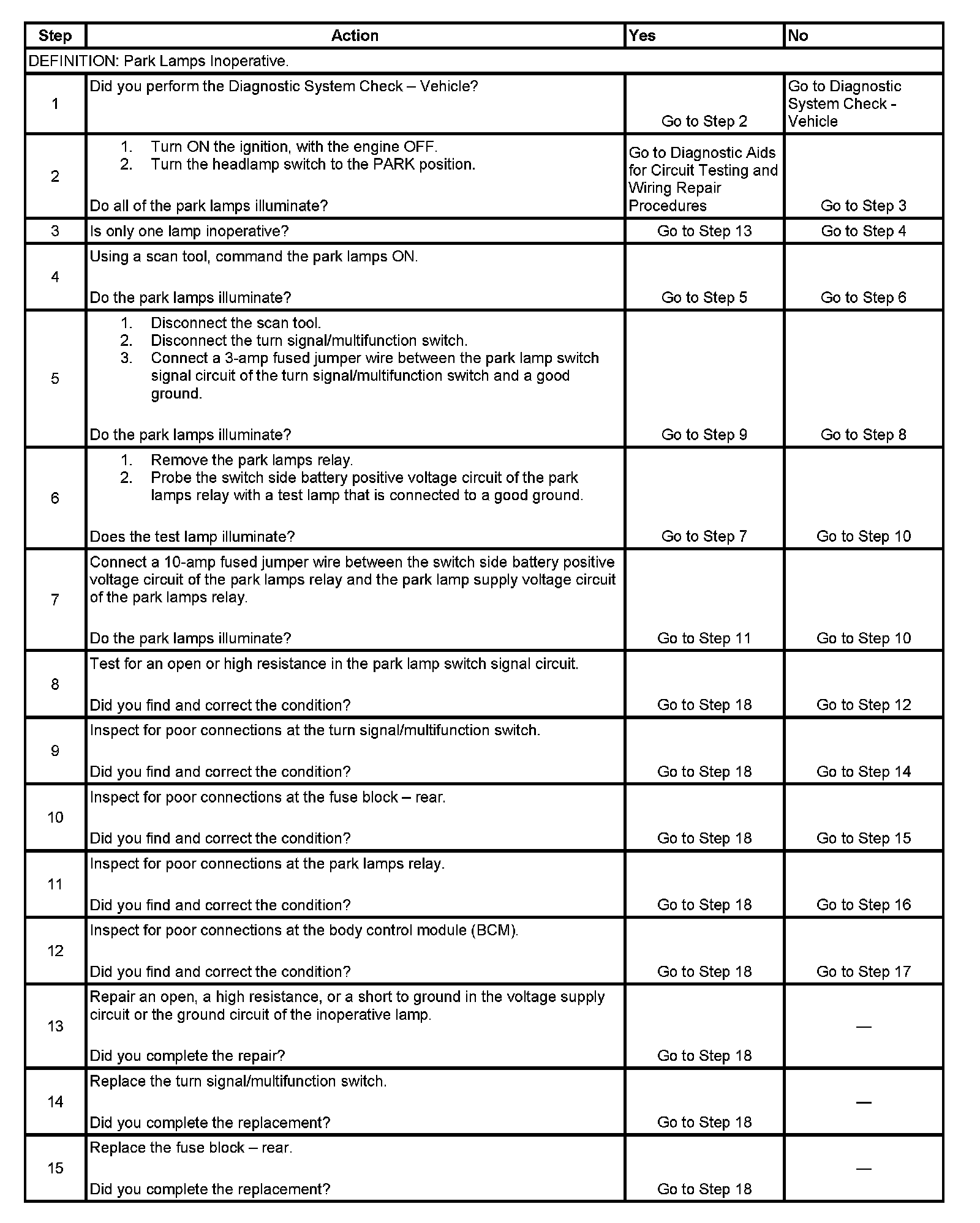 PARK LAMPS INOPERATIVE