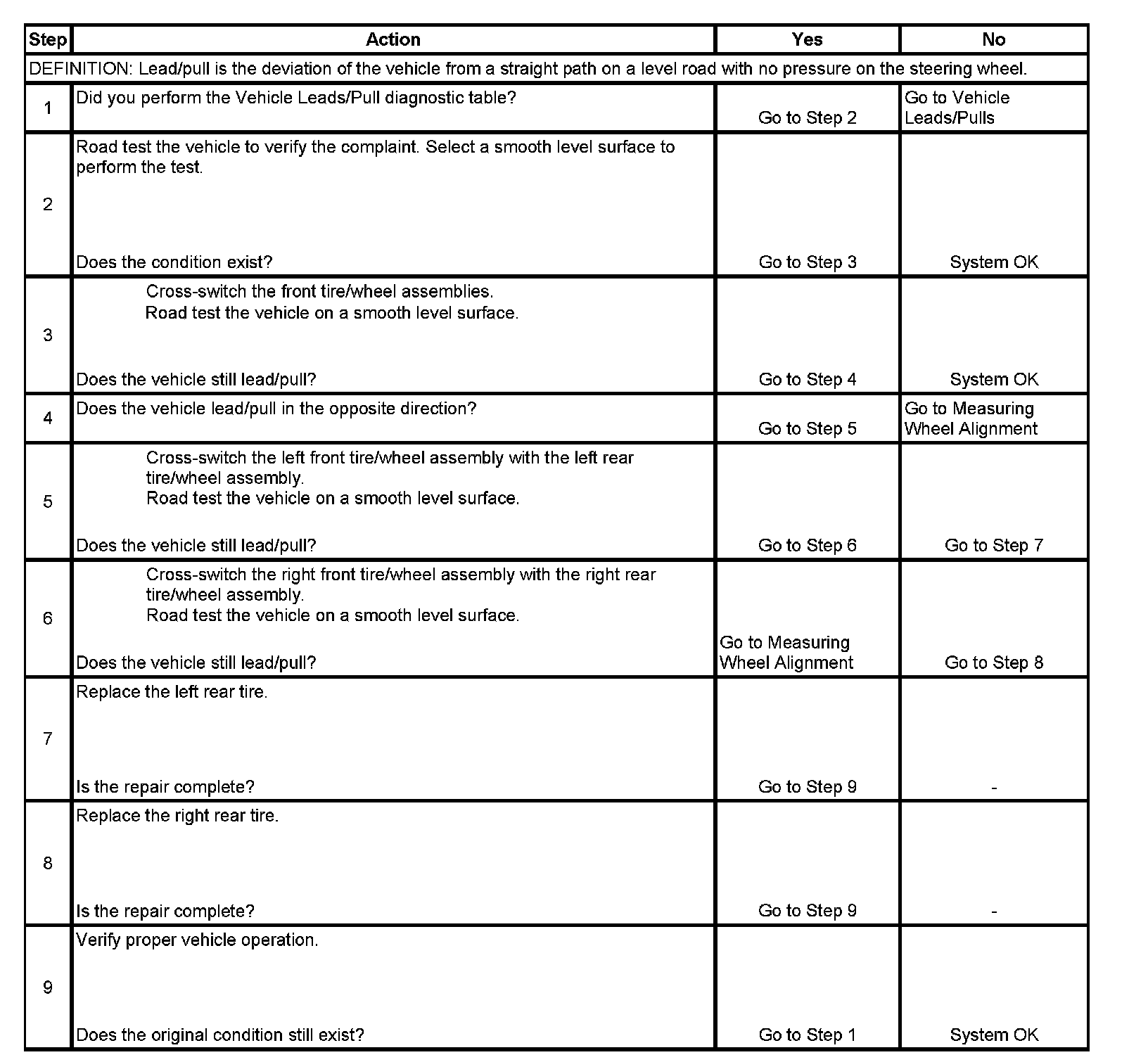 Radial Tire Lead/Pull Correction