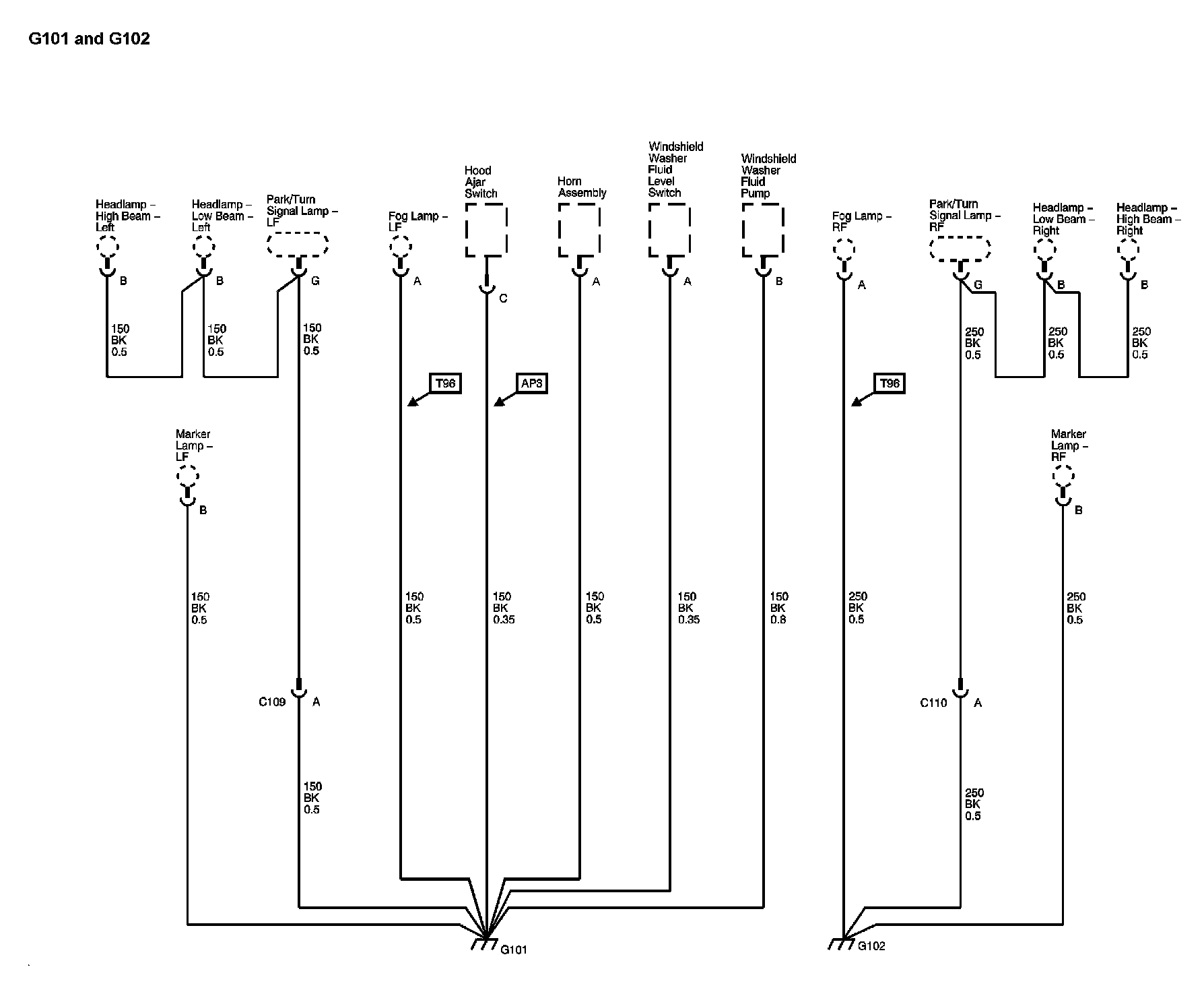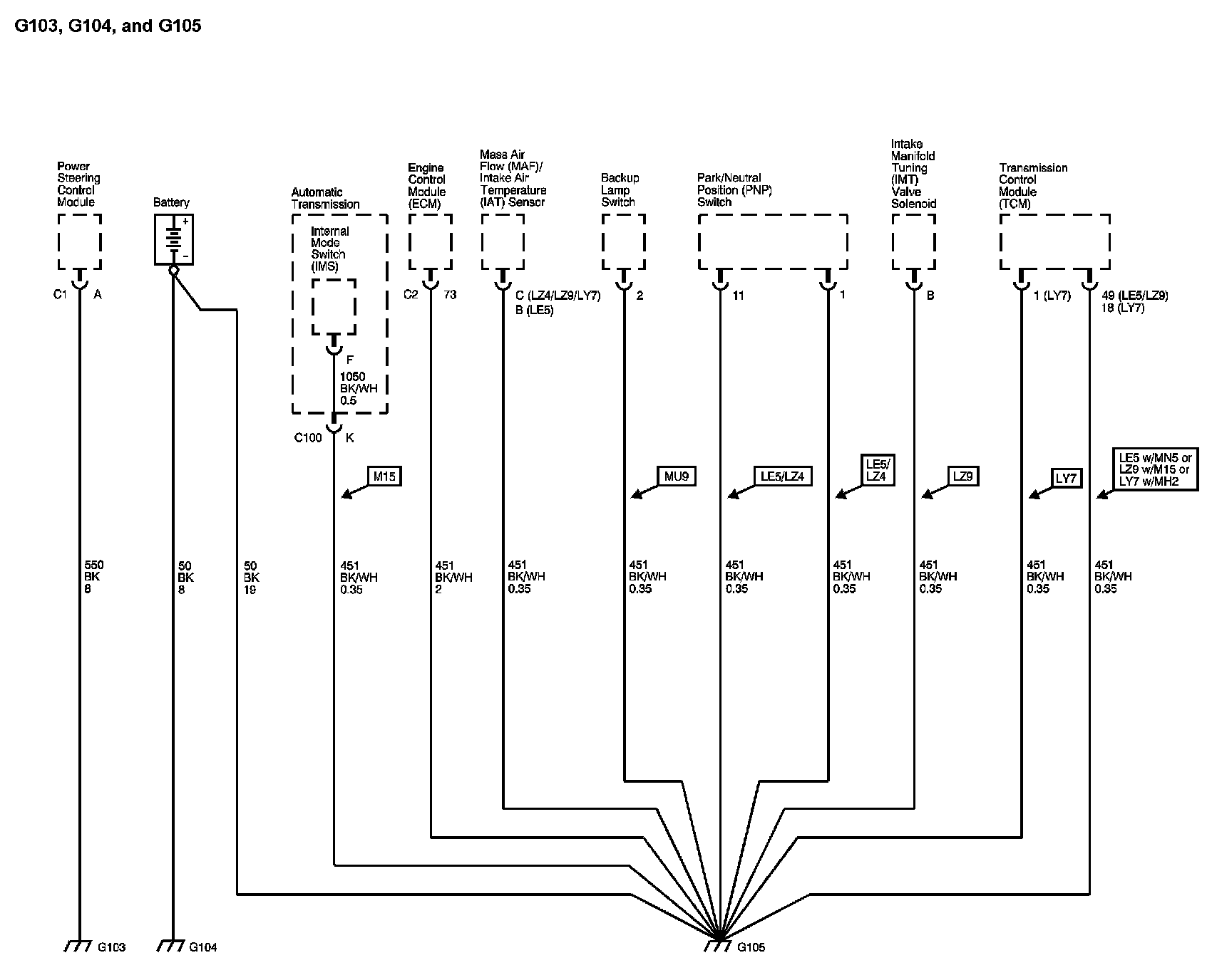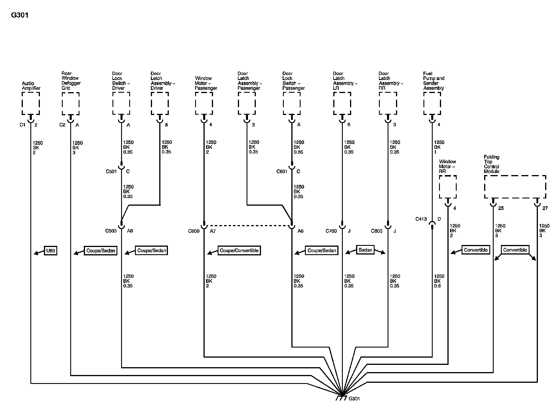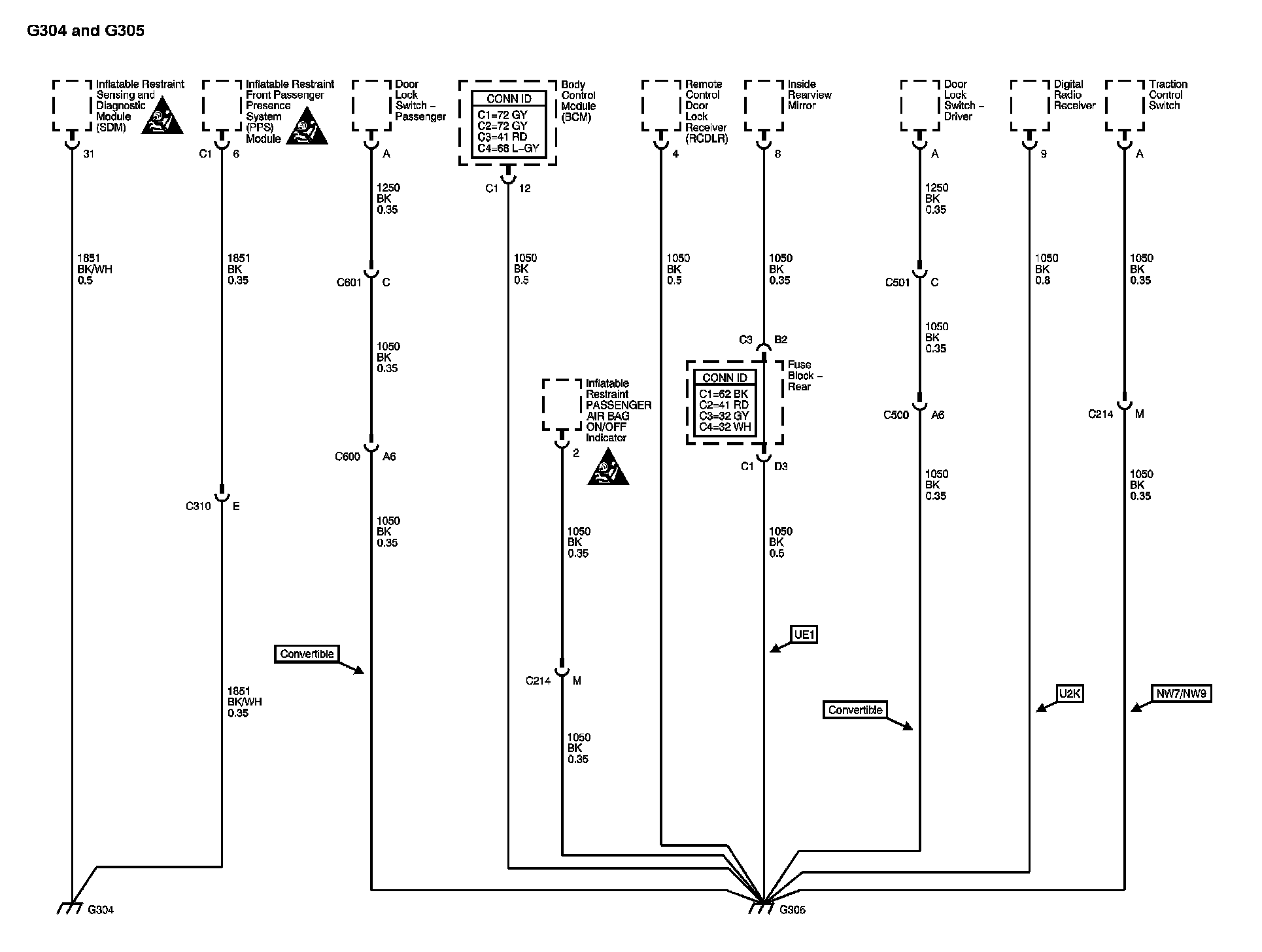Locations: The locations for the Connectors, Grounds, Splices, and Grommets shown within these diagrams can be found via their numbers at Vehicle Locations. Locations