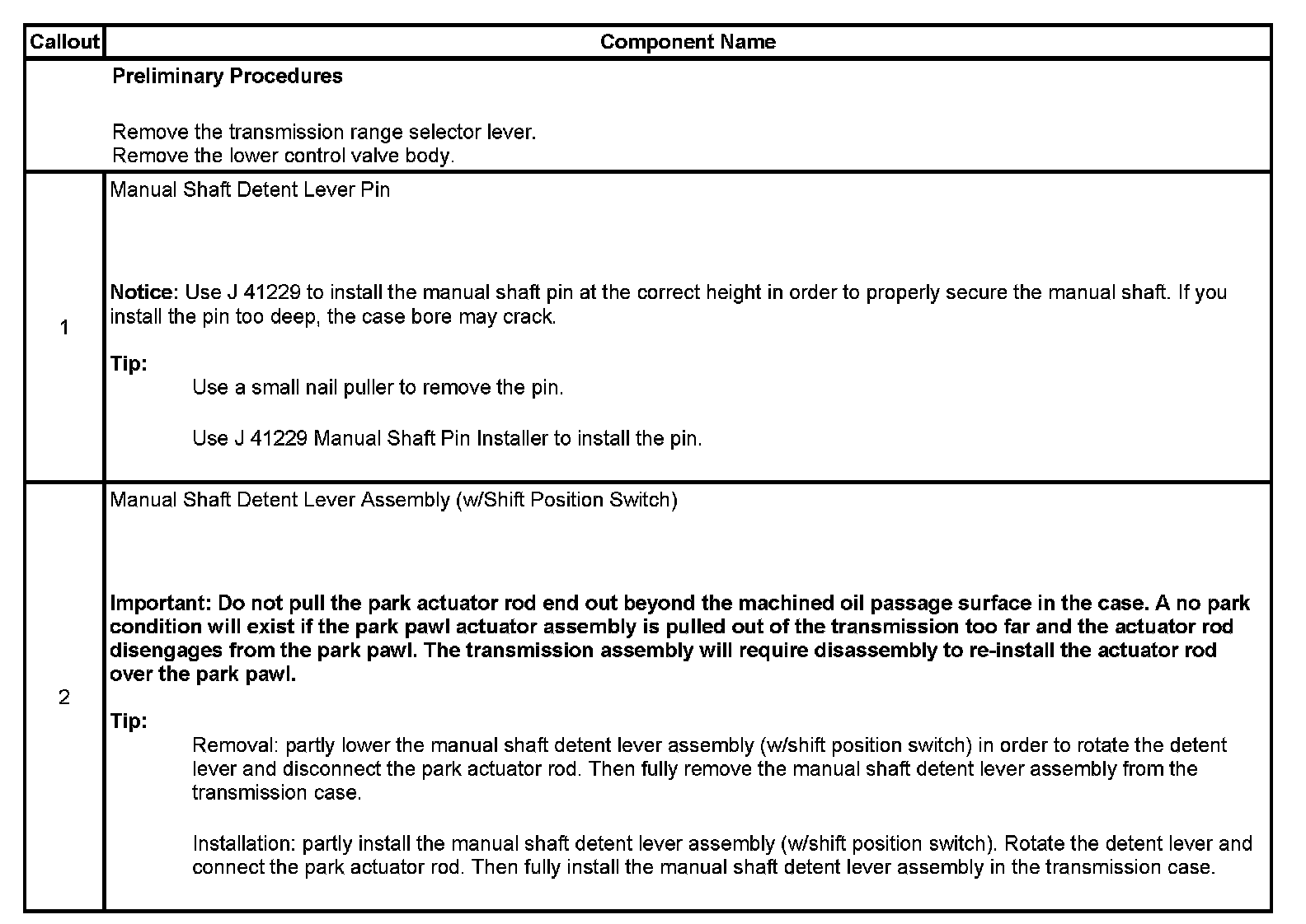 Manual Shift Detent Lever and Shaft Position Switch Assembly Replacement