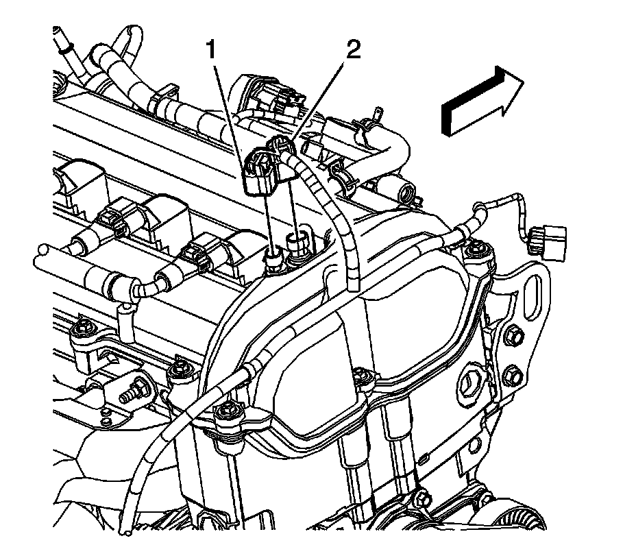 4. Connect the engine harness electrical connector (1, 2) to the appropriate CMP actuator solenoid valve.