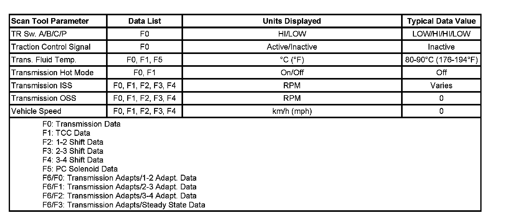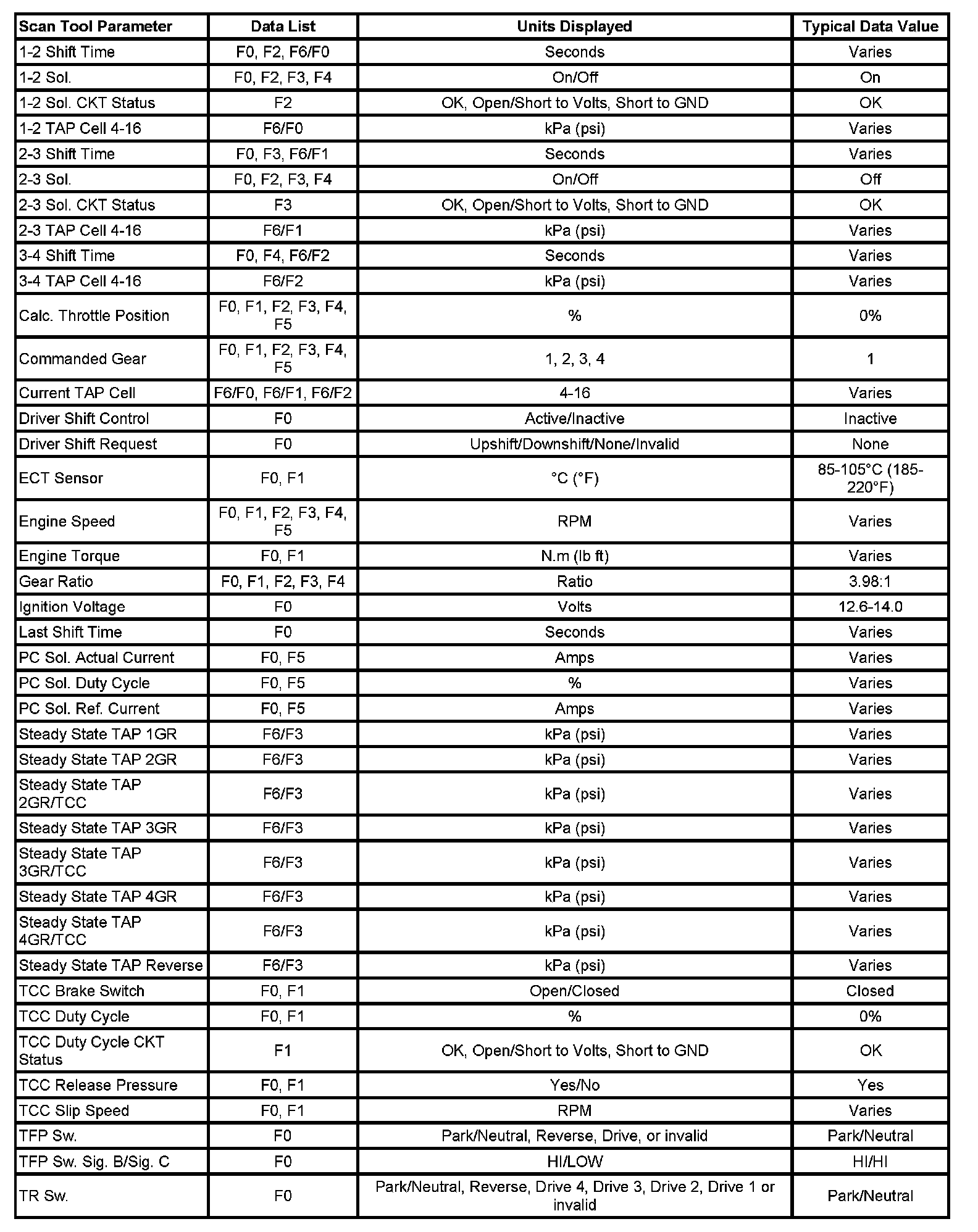 Only the parameters listed below are used in this manual for diagnosing. If a scan tool displays other parameters, the values are not recommended by General Motors for use in diagnosis.