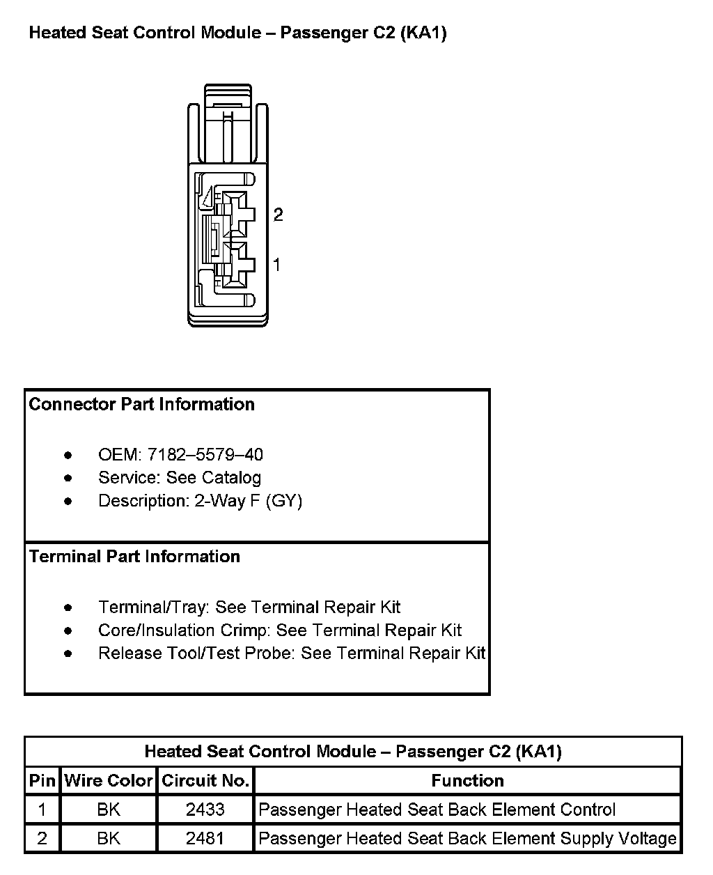 Heated Seat Control Module - Passenger C2 (with RPO Code KA1):