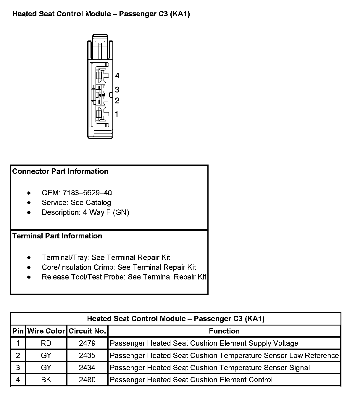 Heated Seat Control Module - Passenger C3 (with RPO Code KA1):