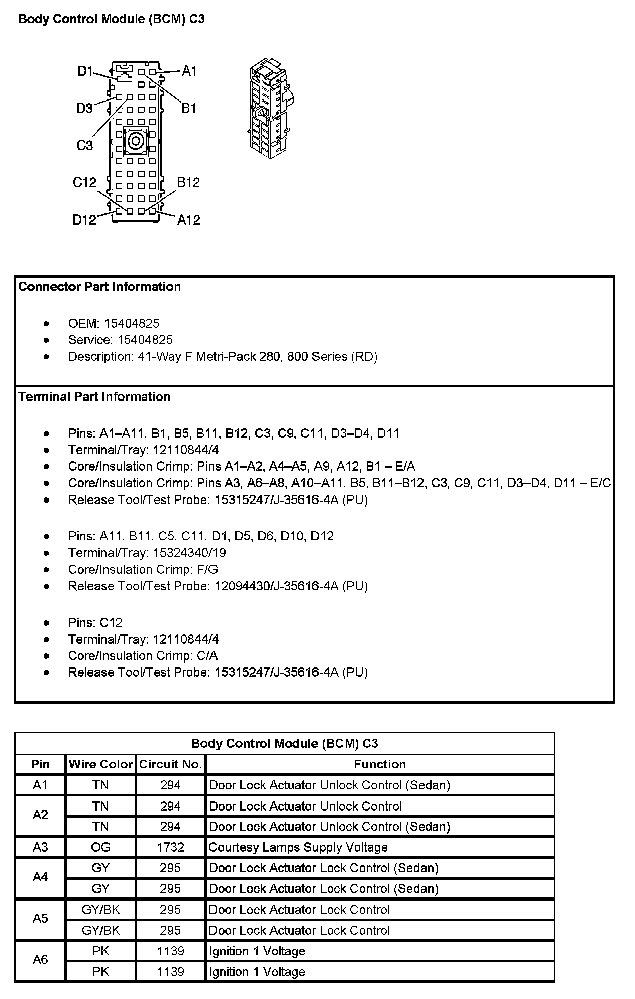 Body Control Module (BCM) C3 (Pin A7 To D12):