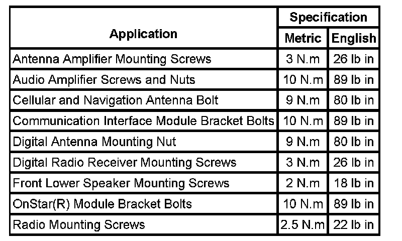 Fastener Tightening Specifications