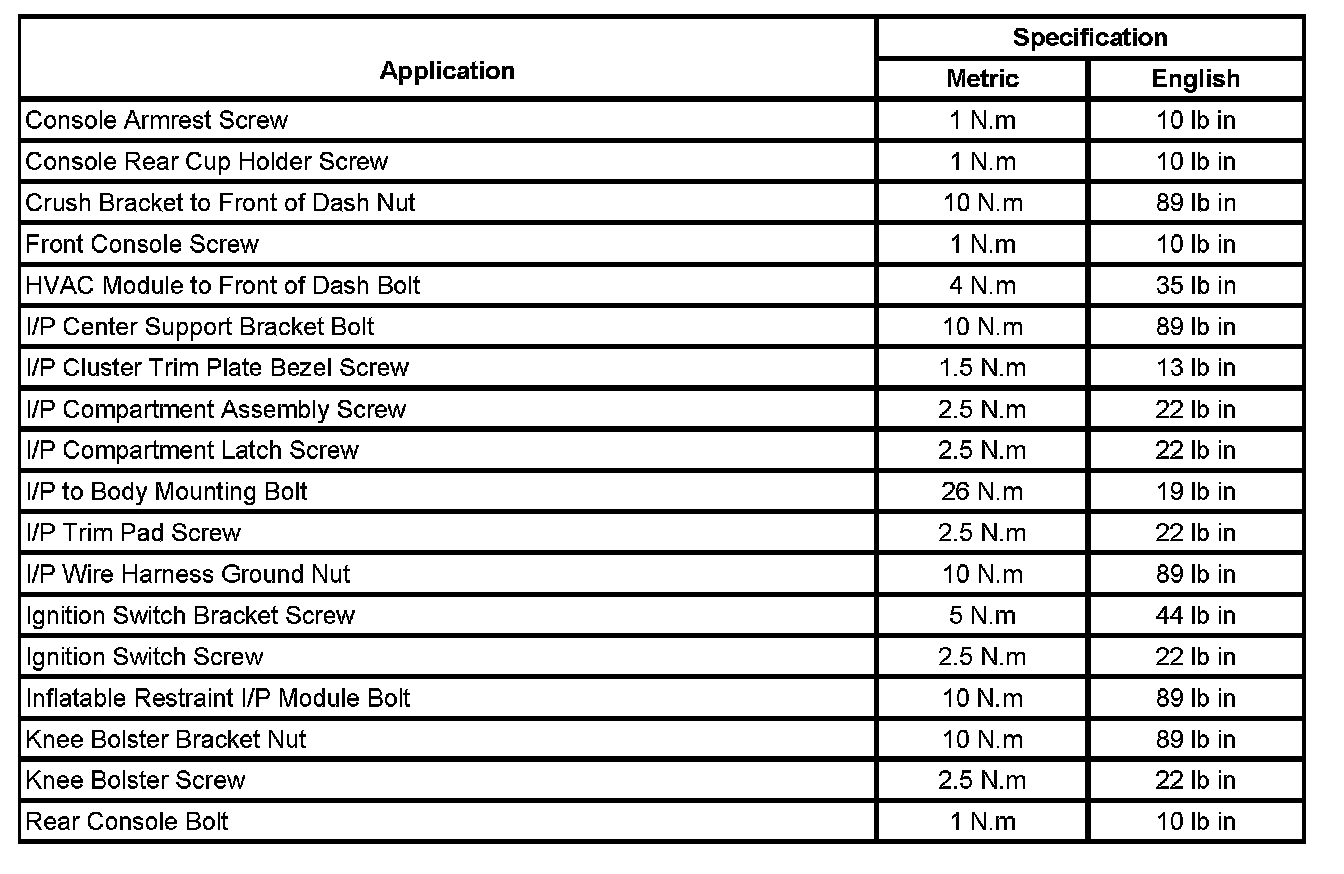 Fastener Tightening Specifications