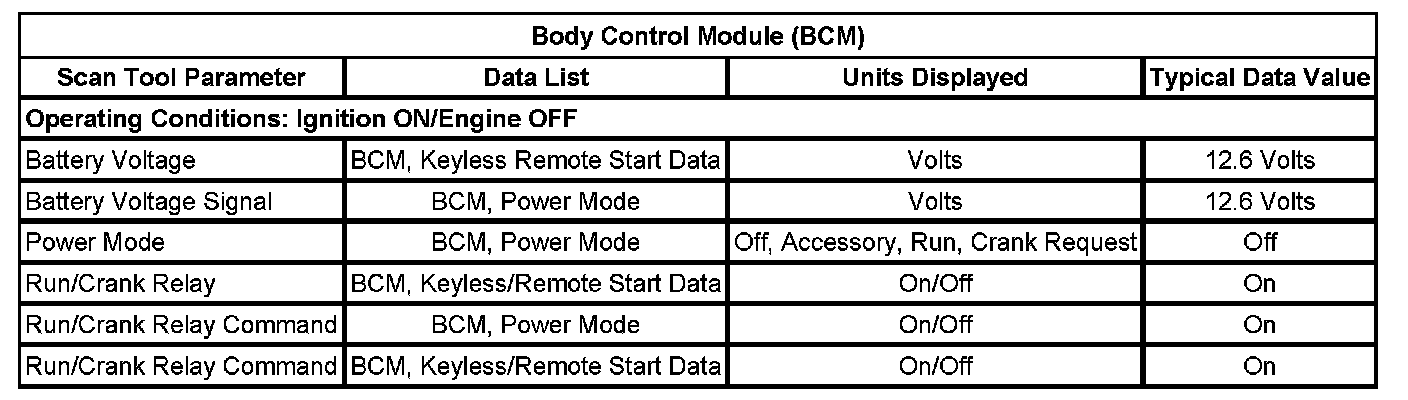 Scan Tool Data List