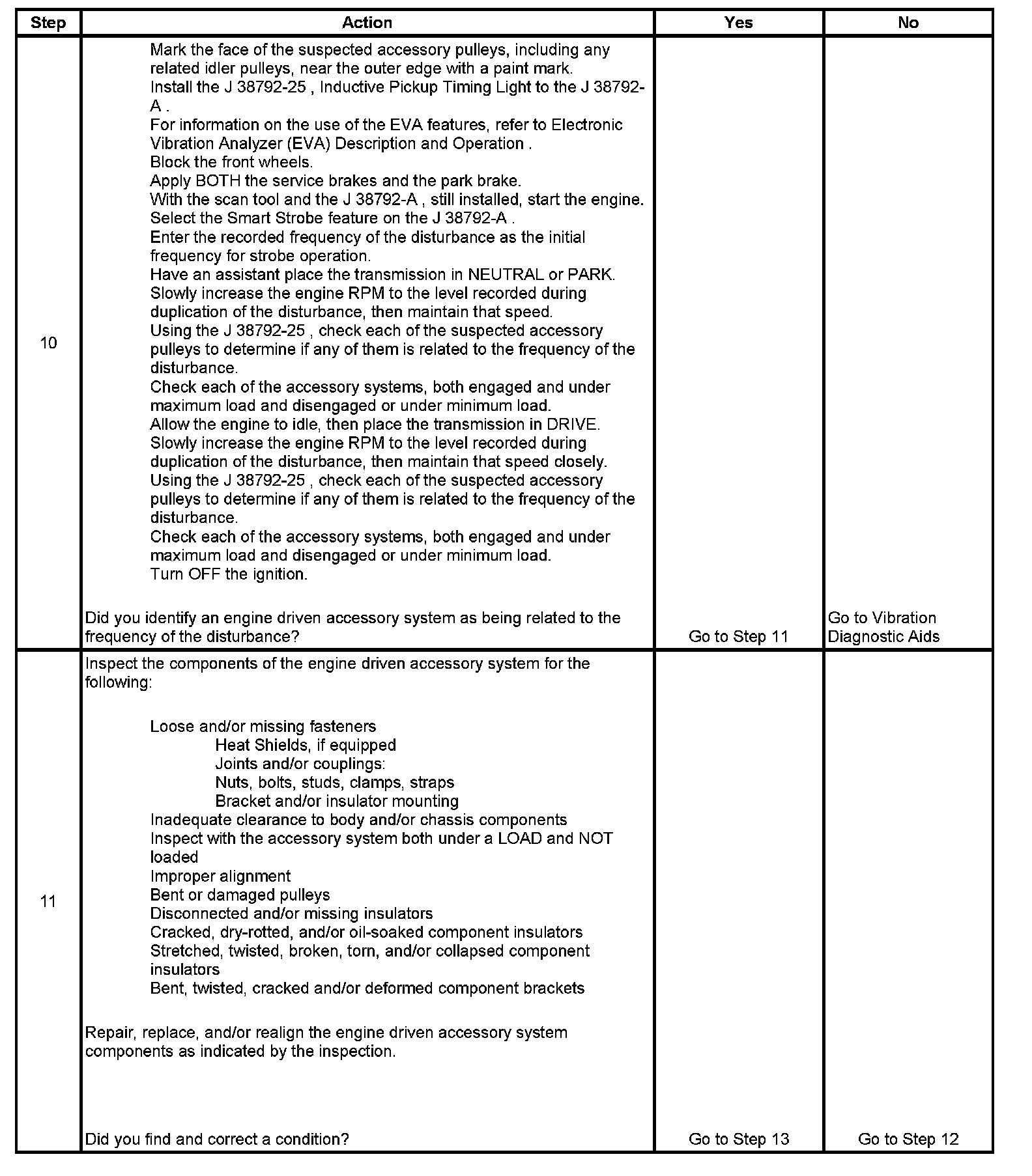 10. If the mark placed on the face of an engine driven accessory pulley seems to stand still while running this test, then that accessory system is either responding to an existing frequency, such as engine firing pulses, or creating a disturbance.