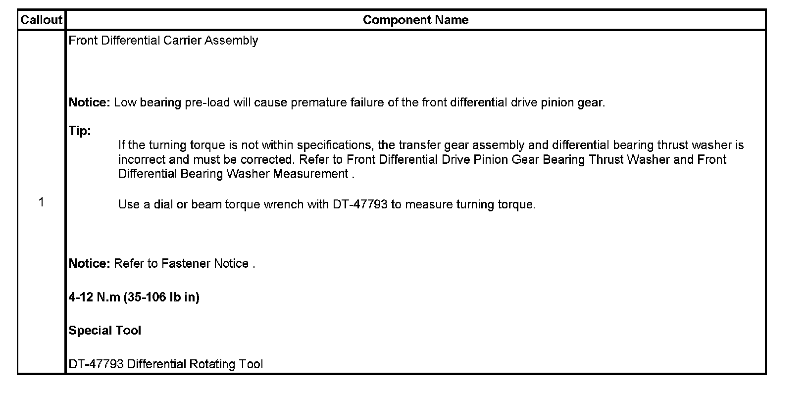 Front Differential Carrier Preliminary Rotational Torque Measurement