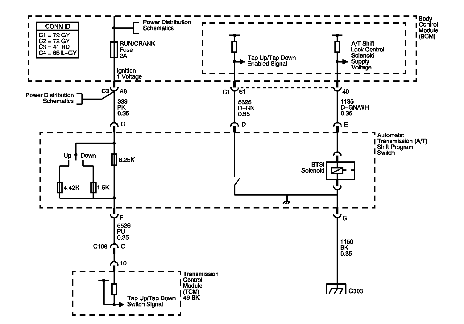 The transmission adaptive pressure (TAP) Shift system allows the driver to manually shift gears by using the TAP Shift switches located on the Automatic Transmission shift lever. Pushing the upshift button will command an upshift and pushing the downshift switch will command a downshift. The TAP Shift system is activated when the gear selector is in the Low (L) position and is deactivated in all other positions.