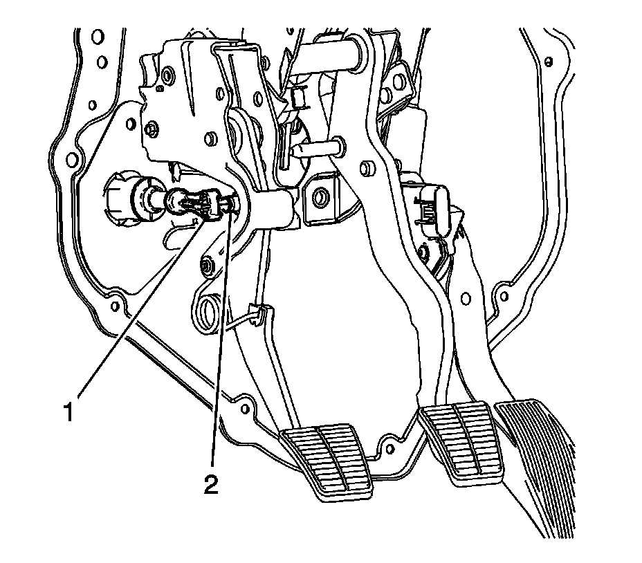 8. Position the clutch master cylinder push rod (1) to the clutch pedal pin (2).