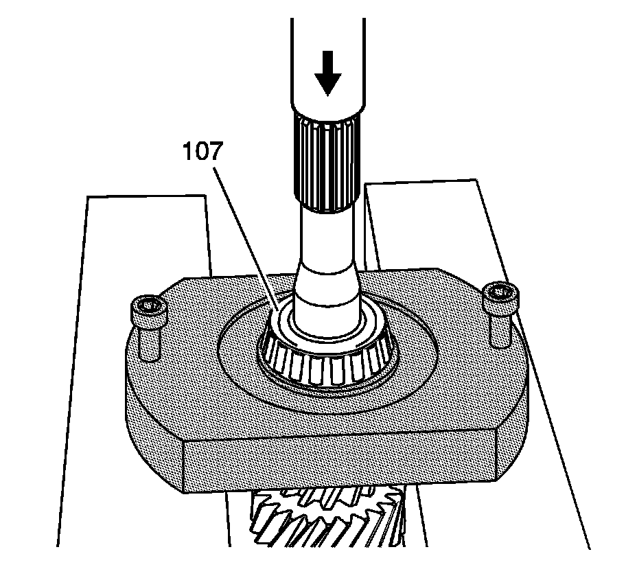 8. Using a pinion fixture and an input shaft bearing puller ring, remove the input shaft bearing assembly (107).