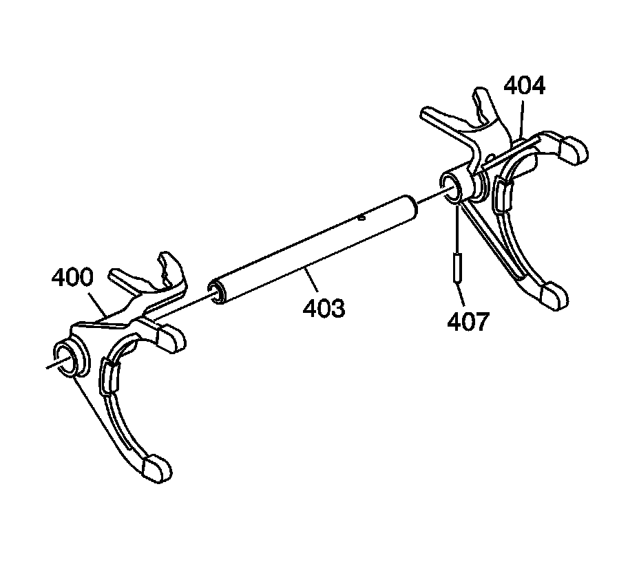 20. Separate the 5th/6th shift fork (400), and the 1st/2nd shift fork (404) from the shift shaft (403).
