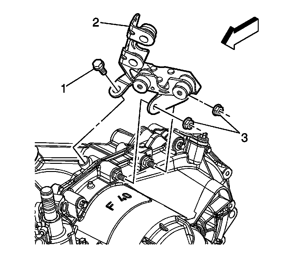 7. Remove the cable bracket bolt (1) and nuts (3).