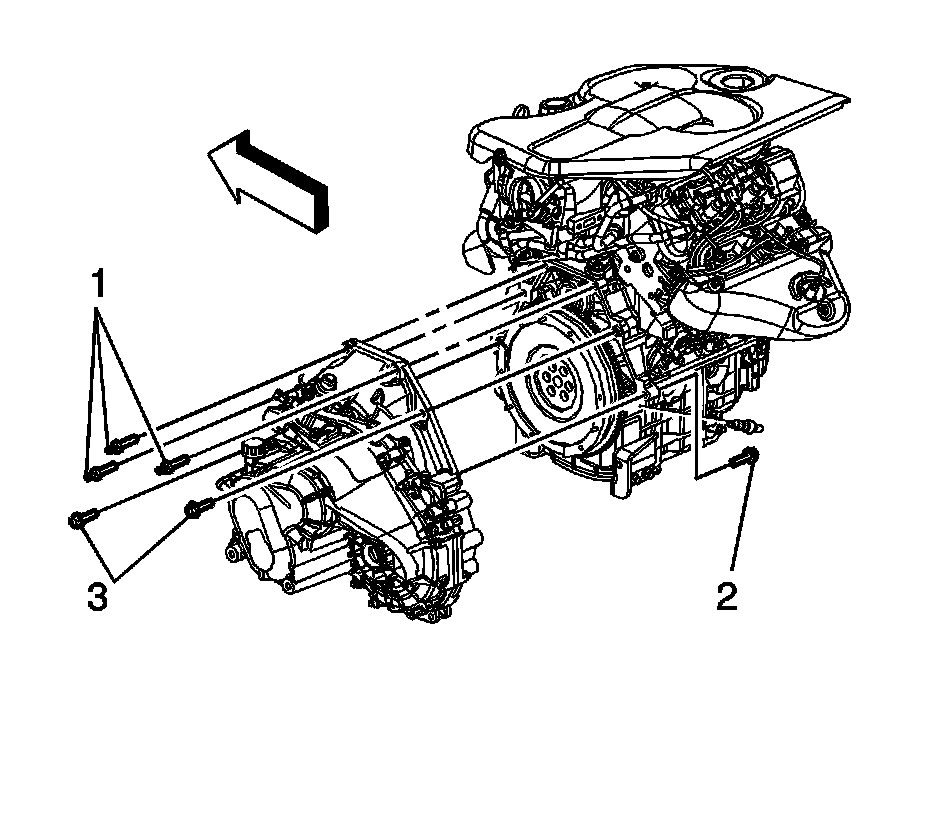 4. Install the upper transaxle mounting bolts. Hand tighten only.