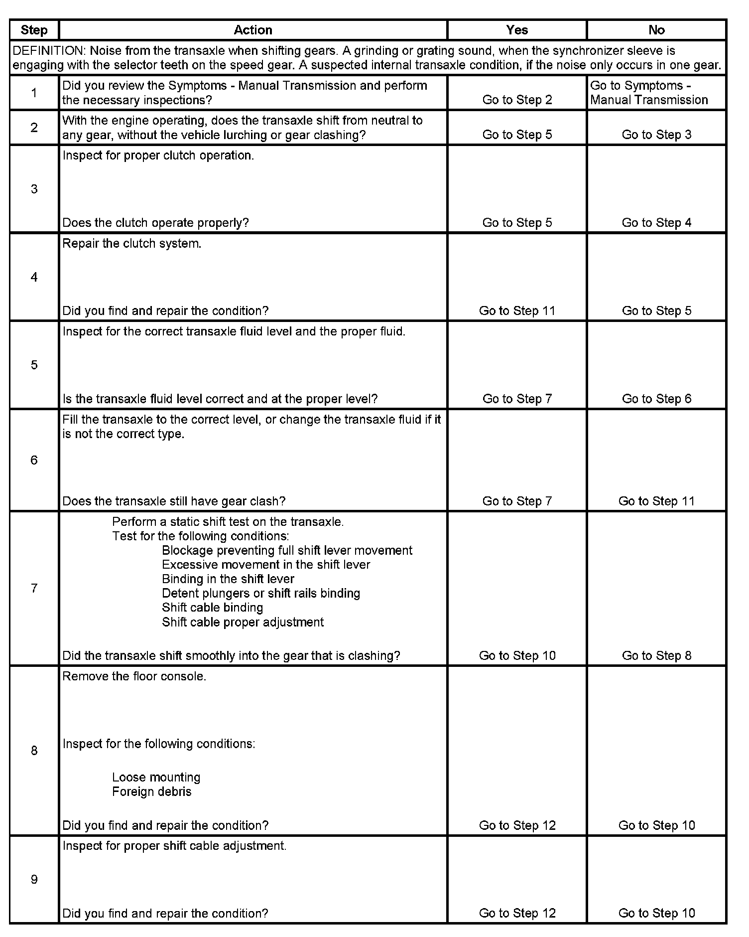 2. This step tests for the proper releasing of the clutch. If the clutch reserve is not proper, the mainshaft gears may still be turning causing the gear clashing.