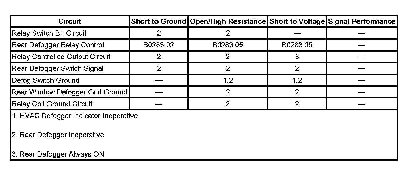 - If the rear window defogger does not turn ON and OFF when changing between the commanded states, refer to Rear Defogger Malfunction.