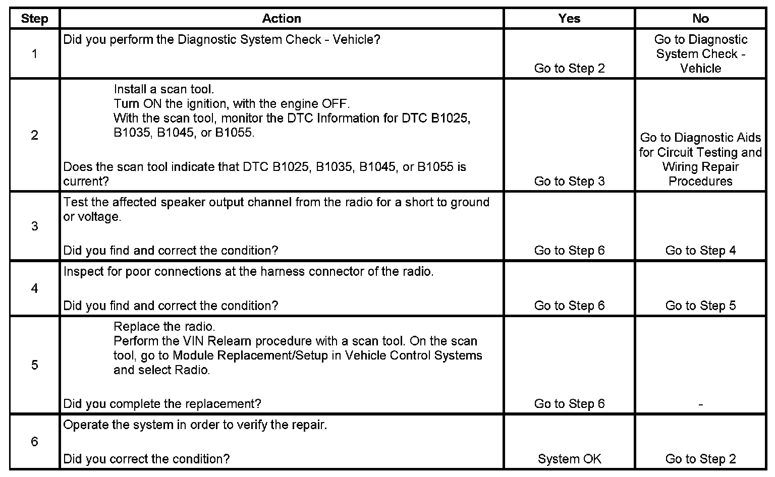 The radio head unit provides four discrete channels to the speakers. Each channel consists of two wires that connect to a speaker. During normal operation, the radio applies approximately 5-6 volts to the plus (+) and minus (-) terminals at the speaker. The terminals attach to the speaker voice coil.