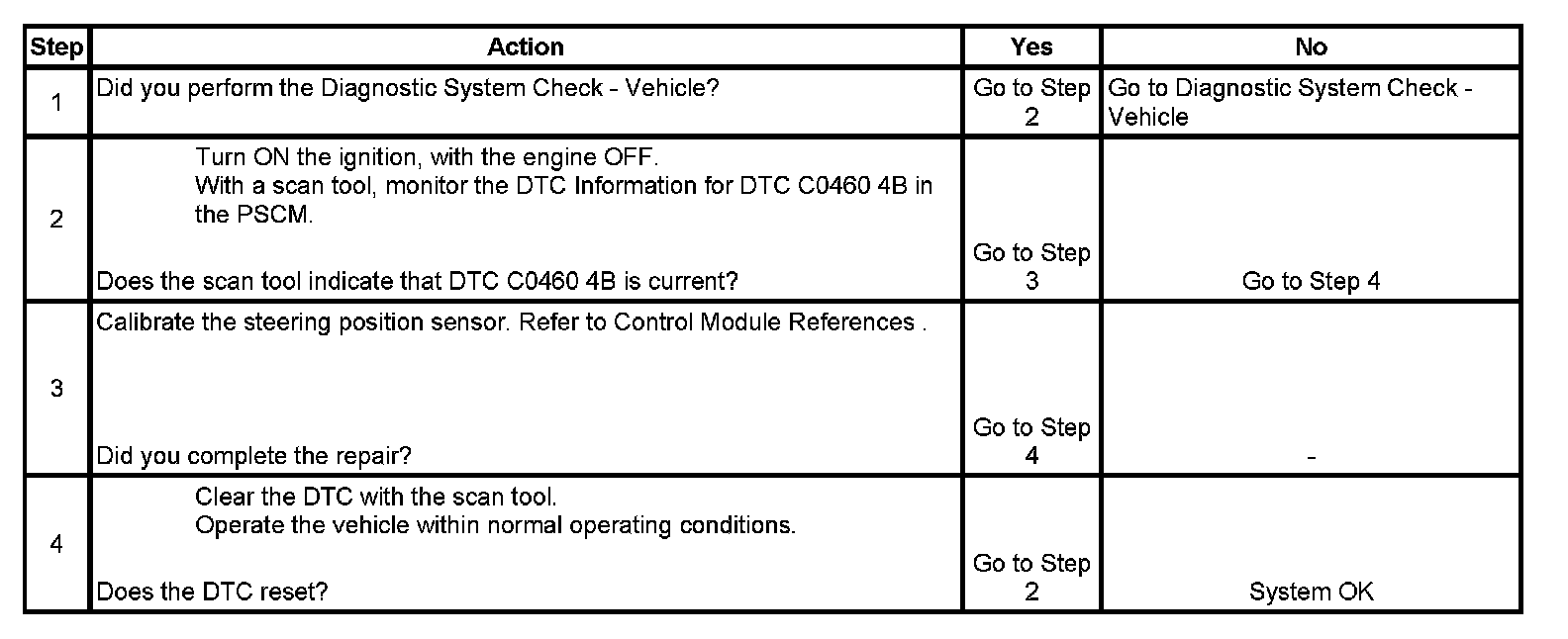 DTC C0460 4B will set on the first ignition ON cycle after PSCM replacement.