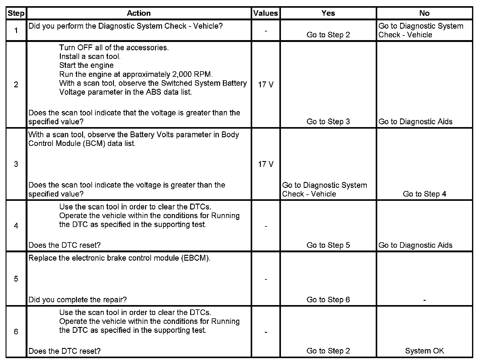 The numbers below refer to the step numbers on the diagnostic table.