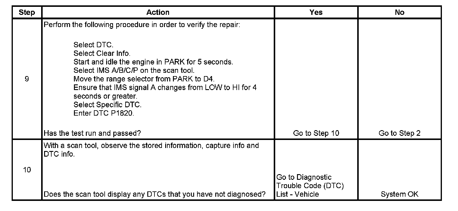 If the TCM detects that IMS Signal A is always low, then DTC P1820 sets. DTC P1820 is a type B DTC.