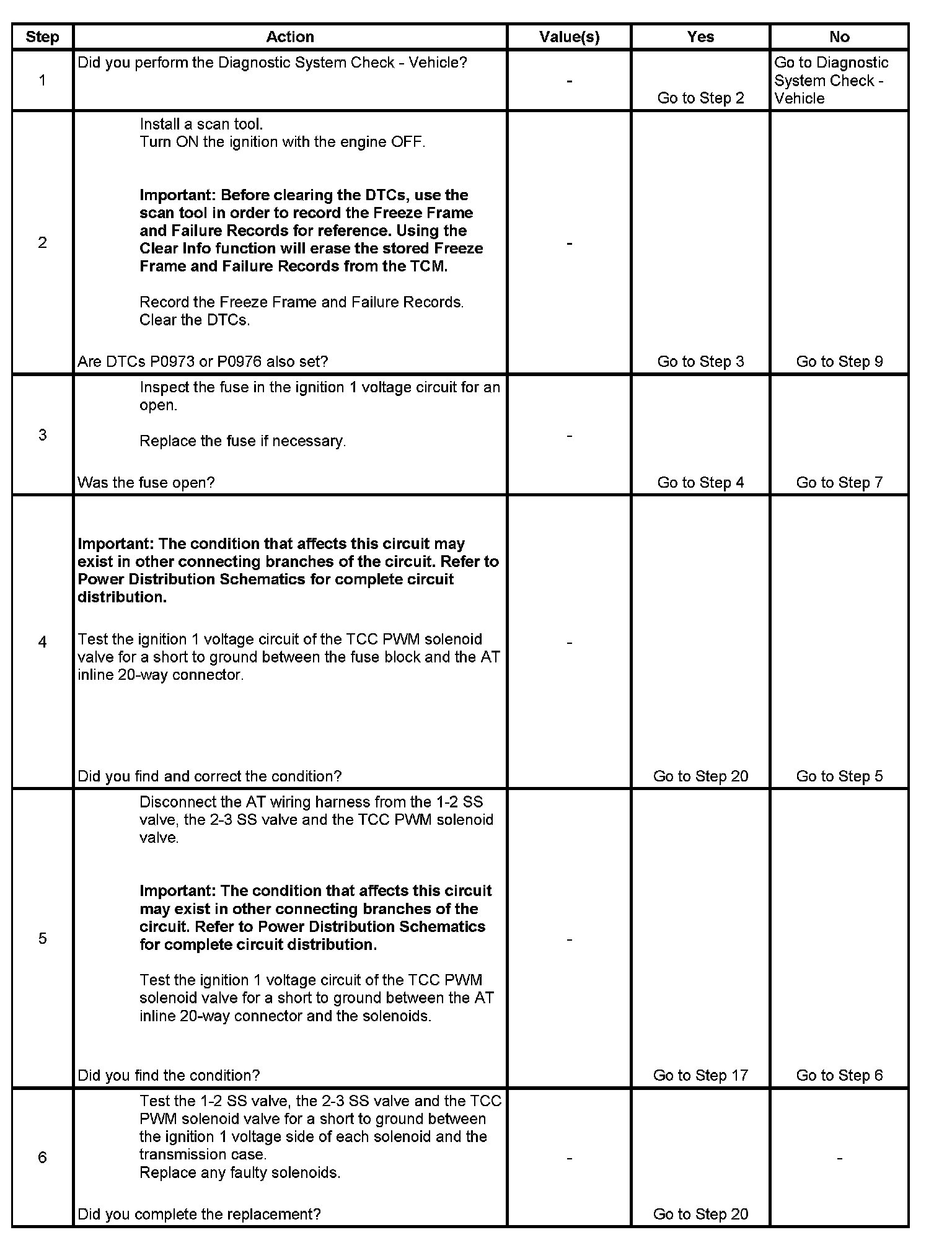 ^ The TCM records the operating conditions when the Conditions for Setting the DTC are met. The TCM stores this information as Freeze Frame and Failure Records.